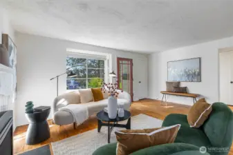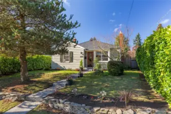 Light-filled mid-century gem nestled on a designated "Healthy Street," this updated home offers a safer, quieter setting for walking and biking with reduced traffic. Inside, you'll find original hardwoods gracing the cozy living room with a gas fireplace. 1940 charm fills this one-level home sited on a large lot with beautiful landscaping ready to bloom in the Spring. Detached garage with alley access plus ample off-street parking including space for an RV. Excellent future potential for a backyard DADU or middle housing development. Unbeatable location for outdoor lovers with a park next door, the Interurban Trail across the street, and Carkeek Park just blocks away. Easy access to transit and a vibrant array of international dining. Great value in this adorable home brimming with potential.