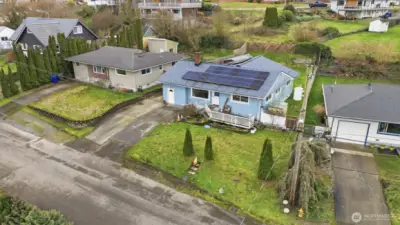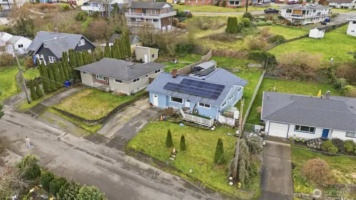 Opportunity knocks in North Everett. This 3-bed, 1-bath home sits on a 6,970 sq ft lot and offers a rare chance for a first-time buyer or visionary owner to build instant sweat equity. The home is livable and features hardwood and custom stone floors, a wood-burning fireplace, bonus storage space with flexibility for future use, a newer roof, and a full solar package. Enjoy east-facing territorial views toward the Cascades and Mount Baker, plus a front deck and rear patio ideal for outdoor living. Off-street parking for up to four vehicles. Conveniently located near Legion Golf Course, Everett Community College, and neighborhood amenities. Seller inspection provided, professionally cleaned, and ready for you to move in or get to work. Possible DADU potential – buyer to verify.