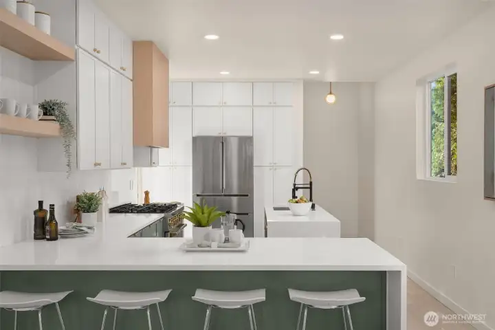 This Queen Anne residence has been meticulously reimagined from the studs out — blending classic neighborhood character with modern performance and design. Thoughtful updates create a refined, contemporary backdrop for everyday living. The open kitchen anchors the home with a generous island, premium appliances, and elegant two-tone cabinetry, flowing seamlessly into living spaces centered around a modern fireplace. Upstairs, five spacious bedrooms provide flexibility and privacy, including a sophisticated primary suite with a freestanding soaking tub set against striking tile — a true retreat. A dedicated office supports work-from-home ease, while 3.5 beautifully appointed baths elevate daily routine. The finished basement, constructed on a fully engineered footing plan for superior waterproofing and long-term durability, delivers both peace of mind and versatile bonus space. A detached garage adds convenience. Located just one block from Queen Anne Avenue’s cafés, boutiques, and parks — with easy highway access — this is a rare, turnkey opportunity in one of Seattle’s most sought-after neighborhoods.
