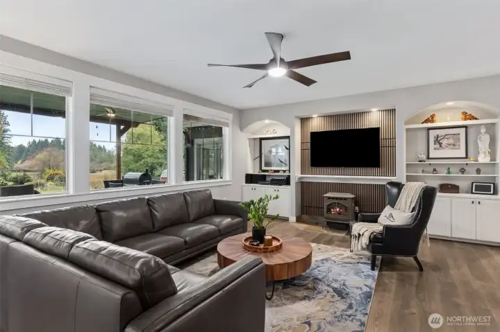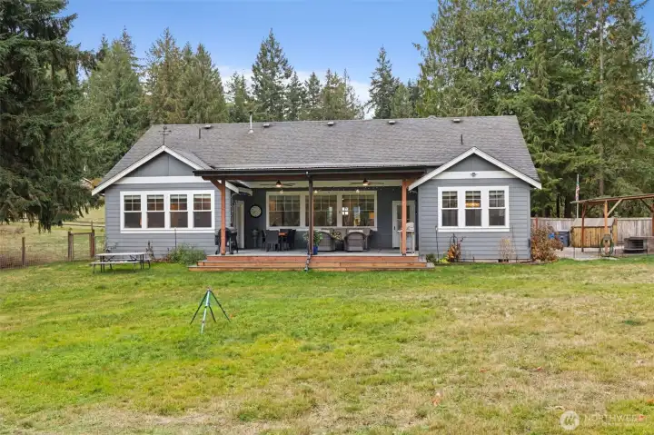 RARE Bonney Lake opportunity! Nearly 1.5 acres of space, privacy and peaceful living, just minutes from town. This 2,376 sf home was refreshed in 2025 with new kitchen appliances, updated lighting and stylish finishes throughout. The open layout blends comfort and function with quartz counters, custom cabinetry and engineered hardwoods. Step outside to an expansive covered deck overlooking fenced gardens, a 10x30 greenhouse, raised beds and lush pasture views. Every garden area is sprinklered for ease, plus a 12x16 storage barn for tools and hobbies. Wake up to sunlit fields, enjoy quiet evenings surrounded by nature, plus reach Costco, shopping and dining in minutes. The best of both worlds: private country living and close to everything.