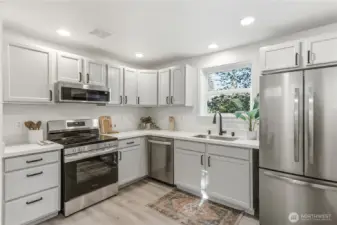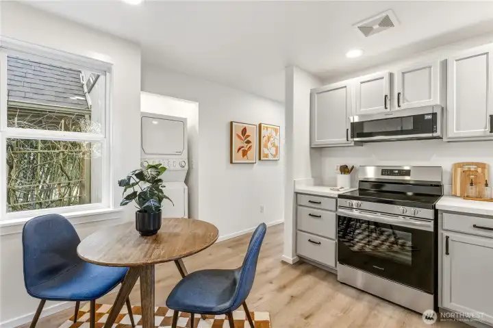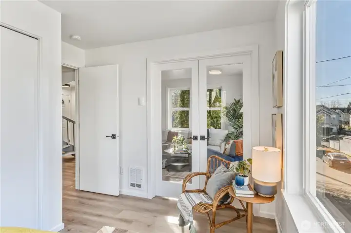 A bright and sunny free standing house. Windows on all 4 sides. 3 blocks from the new light rail station! It also comes with a 2-car garage! The big private patio off the kitchen is great for grilling and entertaining. The primary suite has an attached bonus room. This freshly remodeled 2-bed/2-bath is quiet, near parks and bike paths, and is easily walkable to the Jackson St commercial area. Oh and did I say it's near light rail? Lots of flexibility in this hip, urban abode!