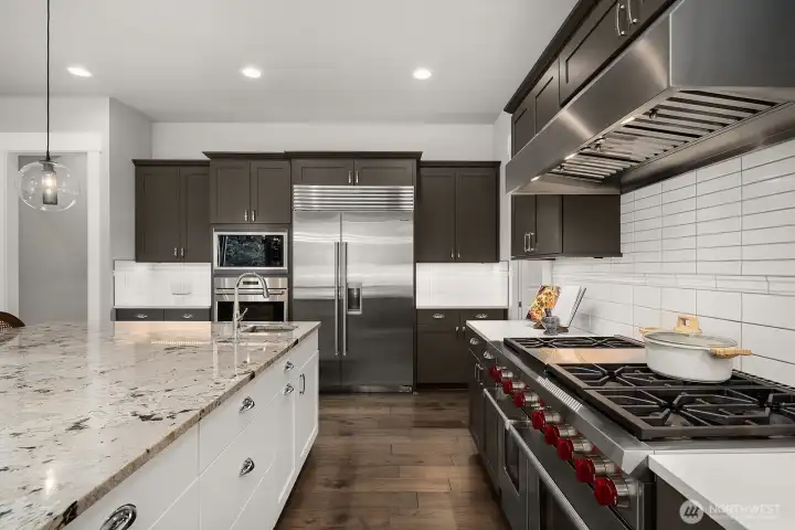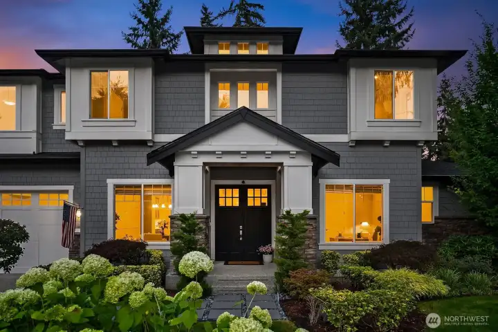 Luxury awaits in West Bellevue’s coveted Calabria neighborhood with this exceptional JayMarc custom home. Just minutes from downtown Bellevue, I-90, and premier shopping and dining, this 5,861 sq ft residence blends timeless elegance with modern comfort. The thoughtful floor plan offers 6 bedrooms, 5.25 baths, soaring 10-ft ceilings, rich millwork, custom built-ins, and abundant natural light throughout. The gourmet chef’s kitchen is the heart of the home, featuring a dramatic quartz island, Sub-Zero refrigerator, Wolf appliances, a walk-in pantry, and seamless flow to the great room, ideal for everyday living and entertaining. A private main-level guest suite provides flexibility for guests or multigenerational living, while the upper-level primary retreat impresses with a spa-inspired five-piece bath and generous walk-in closet. Year-round entertaining extends outdoors to a covered patio with fireplace and a fully fenced, low-maintenance yard. Additional highlights include a 100-bottle temperature-controlled wine vault, dedicated office, expansive daylight basement, and a 3-car garage. No HOA and the rare option for a 38’ boat slip complete the package. Unbeatable walkable location near Enatai Elementary, Lake Washington waterfront parks, Old Bellevue dining and shopping, plus convenient bus access to Seattle and Seahawks games.