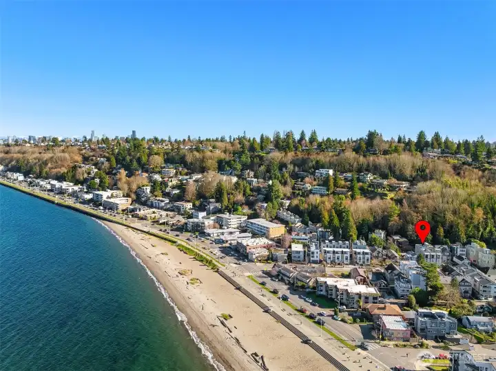 Live the Alki lifestyle where beach days, sunset strolls, and vibrant city energy meet. Just one block from the shores of Alki Beach, this exceptionally spacious and meticulously maintained townhome offers the perfect balance of coastal living and urban convenience. Tucked near the end of a quiet, low-traffic drive, the home feels like a peaceful retreat while keeping you moments from everything Alki has to offer. Inside, natural light pours through walls of windows, creating bright, welcoming spaces designed for both everyday comfort and effortless entertaining. The thoughtfully designed kitchen features quartz countertops and high-end Bertazzoni and KitchenAid appliances, setting the stage for memorable meals and easy gatherings. The true showstopper awaits above with sweeping views of Puget Sound and the Olympic mountains from the incredible rooftop deck, complemented by an additional covered outdoor living area perfect for year-round entertaining no matter the season. The versatile den/office creates flexible living options, ideal for a bright work-from-home space, media room, home gym, or welcoming guest area. Paired with a rare 2-car garage, offering storage and convenience that are truly uncommon in beachside living. Whether you’re cruising the beach path, soaking in golden sunsets, or enjoying Alki’s beloved restaurants and cafés, this home places the very best of beach life right outside your door. A true Alki gem and an absolute must-see!