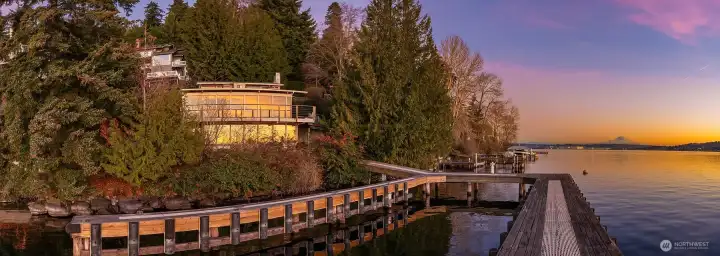 Sylvan Reach combines two parcels, two waterfronts in a once-in-a-generation waterfront holding on southwest Mercer Island encompassing 220 feet of southwest-facing Lake Washington shoreline across over 3/4 acre from street to water, featuring three docks, two homes, and a log cabin. This extraordinary two-parcel offering delivers rare scale, privacy, and long-term potential. The low-to-mid bank waterfront includes a 65-foot deep-water yacht moorage, a swimming dock, and a 30-foot boat dock. Set among evergreens and frequented by eagles, the land unfolds from elevated outlooks with views toward Mount Rainier down to the water’s edge. Three existing structures—each positioned for privacy and separation—offer immediate use while preserving flexibility for a future legacy vision. Whether reimagined as a singular estate or thoughtfully divided into two substantial homes, the site invites a buyer with patience, creativity, and a long horizon. Accessed by private driveways from both the north and south, the property offers rare seclusion without sacrificing proximity to town, parks, and transit. Sylvan Reach represents one of the most significant remaining waterfront opportunities on Mercer Island—an irreplaceable canvas for those seeking privacy, scale, and a lasting connection to land, light, and water. Enjoy one of the longest arcs of sun in Seattle. Survey and Feasibility for waterfront property available.