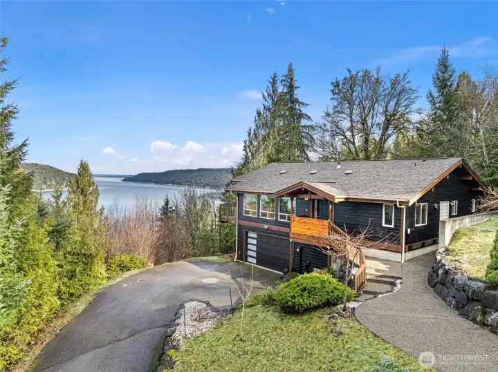Perfectly situated with panoramic views of the Hood Canal and Olympic Mountains & thoughtfully designed with an open-concept layout, featuring vaulted, open-beam ceilings. Spacious kitchen with a live edge counter bar, and a generous primary suite. Enjoy year-round comfort with a heat pump and effortless entertaining on the covered deck, ideal for sightseeing and BBQs. Located in the desirable Olympic Vista community, you'll have access to a waterfront clubhouse, dock, and private beach. Just minutes from Alderbrook Resort & Golf, Union Marina, local dining, Twanoh State Park, and endless outdoor recreation at Lake Cushman. Recent upgrades include, exterior paint, new garage door in 2025 & new roof in 2017.