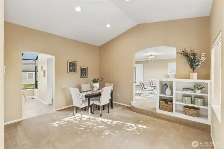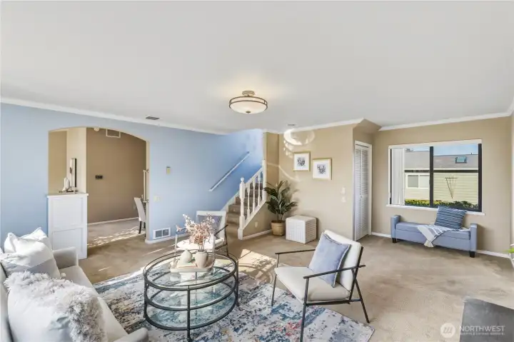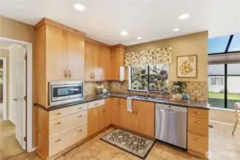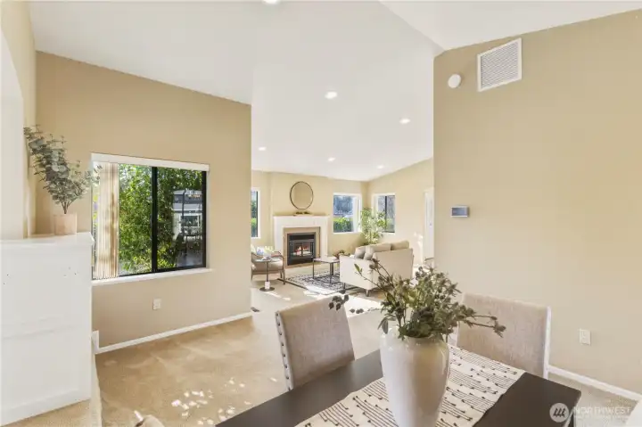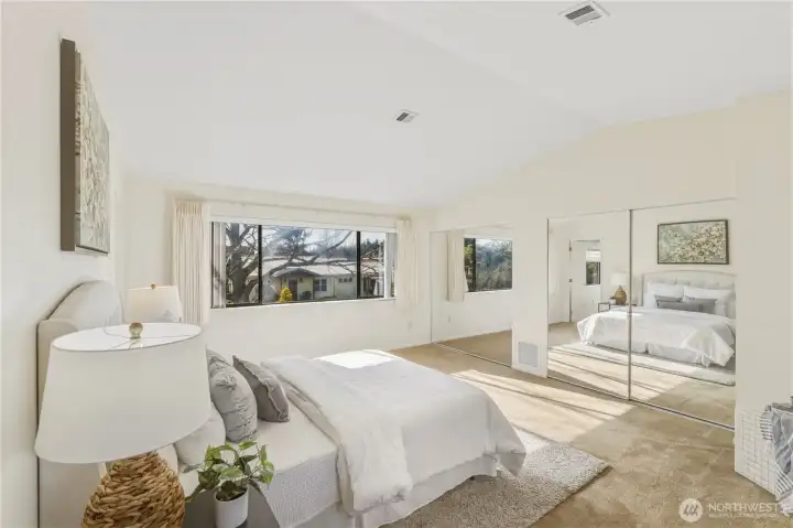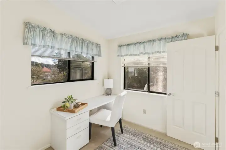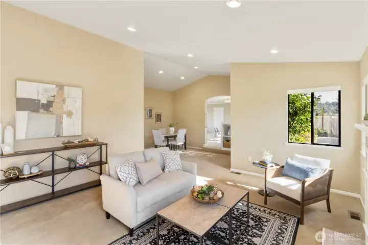 Light-filled & spacious, this inviting home offers vaulted ceilings, a striking interior atrium & a thoughtfully designed circular floor pattern that creates effortless flow throughout the main living areas. Sunlight abounds from expansive windows, filling the home w/ warmth & enhancing the airy, open feel. Designed w/ accessibility in mind, the home features no-threshold entry & comfortable, easy movement. The welcoming family room provides generous gathering space, while a separate den offers flexibility as a library, media room, or additional office. The kitchen opens to a bright daylight eating nook—the perfect spot for morning coffee surrounded by natural light. Just beyond, the atrium creates a beautiful architectural focal point, bringing greenery & serenity into the heart of the home. The primary suite is spacious & inviting w/ a lovely well-appointed bath. The office, just off the primary, provides ideal workspace or reading room. Upstairs, a private suite offers versatility-whether utilized as a place to retreat, guest quarters, or caregiver space, there is separation all the while remaining conveniently connected—ideal for multi-generational living. Situated on an oversized corner lot with tons of opportunities for gardening or outdoor enjoyment. Perfectly located for easy access to schools, hospital, downtown shops, Uptown amenities & all that Port Townsend has to offer. A rare blend of thoughtful design, flexible living spaces, and unbeatable location.
