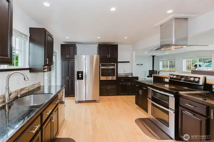 Wonderfully updated East Bremerton home on flat just shy 1/2-acre lot! This tastefully refreshed 3-bedroom, 2-bath home offers exceptional flexibility with two additional office/den spaces—ideal for working from home, or for all your hobbies. Primary bedroom with additional bedroom/office space on the main level allows for easy living! Newly updated low maintenance vinyl plank flooring adorns downstairs, a spacious living room perfect for entertaining. You'll love the chef’s kitchen designed for gathering and meal prep! New roof for peace of mind installed 2024 & Economic solar panels allows for LOW utility costs! Multiple ductless split units ensure year-round comfort. Two cozy wood stoves add warmth and charm on winter nights. Large, fully fenced yard allows for privacy & plenty of room for Summer gatherings, BBQ's & space for your furry friends! Centrally located near Kitsap military bases and cross-sound ferries. Home pre-inspected which allows you to buy with confidence! This one won’t last!