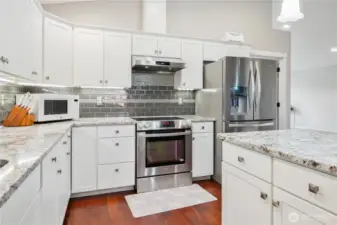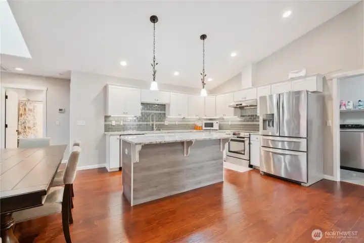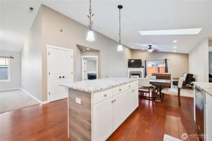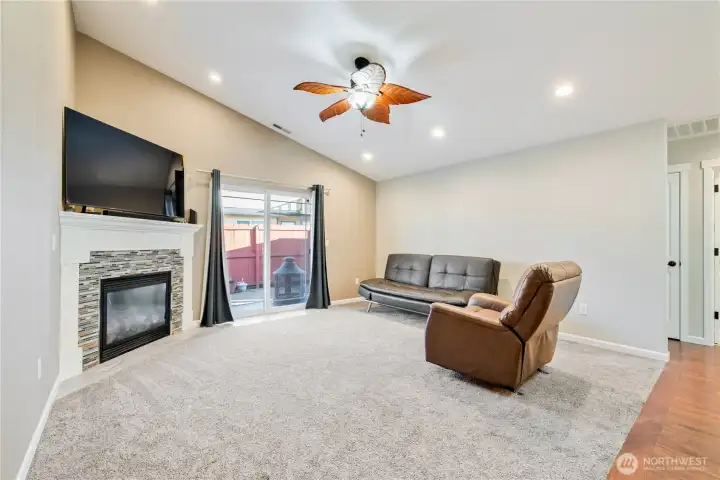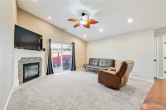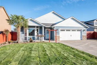 Welcome home to this beautifully maintained newer construction 3-bedroom, 2-bath featuring a great room concept with an additional vaulted front living room that adds space and charm. The custom kitchen is a true standout with granite countertops, stainless steel appliances, a massive island perfect for entertaining, and upgraded pull-out cabinetry for maximum storage and functionality.The spacious primary suite features a walk-in closet, double sinks, and a tiled walk-in shower. Cozy up in the living room next to the propane fireplace, or step outside to enjoy the fully fenced backyard complete with a covered patio—perfect for year-round outdoor living.Additional highlights include an oversized driveway with room for RV parking, a storage shed, and a low-maintenance yard ideal for easy living. This home checks all the boxes—don’t miss your opportunity to make it yours!