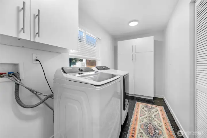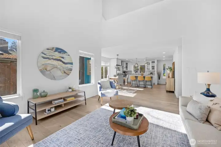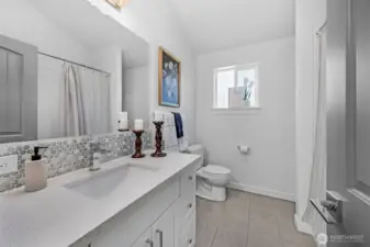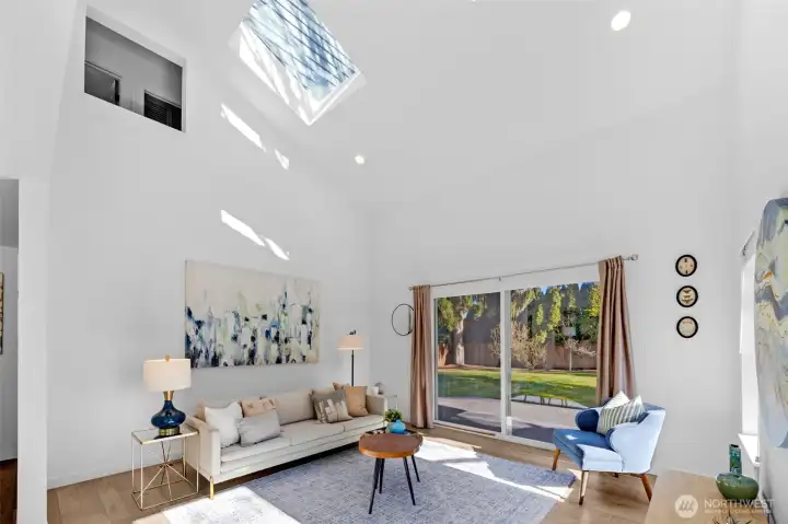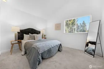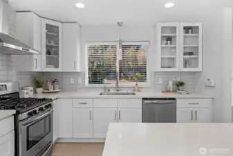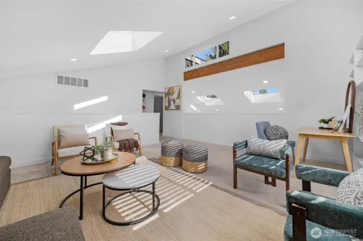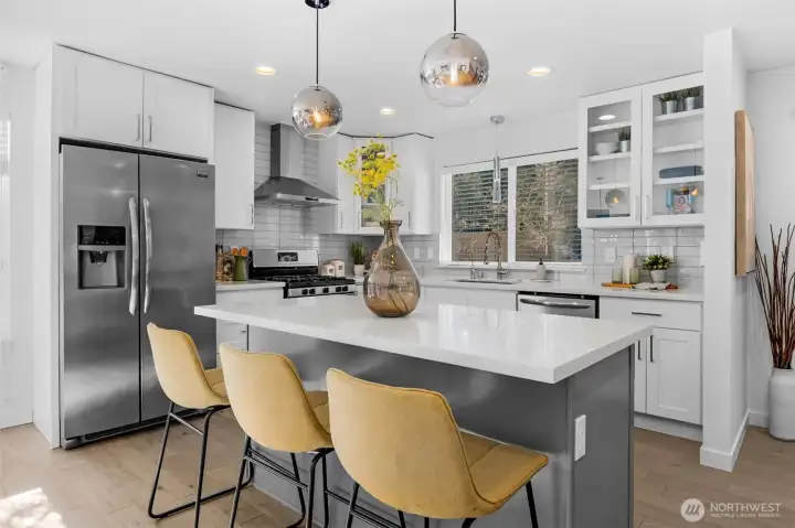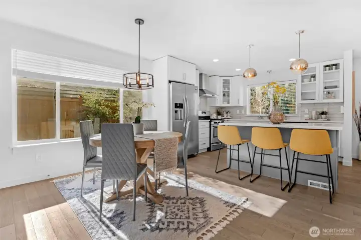Tucked away on a peaceful cul-de-sac near Ballinger Lake, this refined Edmonds two-story home delivers abundant natural light, modern updates, and effortless indoor-outdoor living. The main-floor primary suite offers a private retreat with a remodeled bath and direct access to the deck and expansive backyard, perfect for morning coffee or relaxed evenings outdoors. The bright open floor plan is enhanced by skylights that flood the home with natural light throughout the day. At the heart of the home, the beautifully remodeled kitchen features crisp white cabinetry, quartz countertops, a sleek glass backsplash, new appliances, and designer lighting, creating a space that is both functional and elevated. Upstairs, two generously sized bedrooms, a full bath, and a spacious family room with vaulted ceilings provides flexible living space ideal for entertaining, work-from-home, or relaxing. Every bathroom has been thoughtfully remodeled, and the home is truly turnkey with air conditioning for year-round comfort. Outside, the oversized, level yard is beautifully manicured and offers exceptional space for entertaining, play, or quiet enjoyment. With room for RV parking or a large garage and close proximity to Ballinger Lake, parks, shopping, and dining, this Edmonds home offers privacy, comfort, and lifestyle in one beautifully finished package.