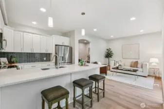 Great find. Over 2300sf fully remodeled from top to bottom. New floor coverings, cabinets, countertops bathroom fixtures, Appliances, New lights added throughout. Freshley painted and ready to move in. There is a large deck off the kitchen as well as a large patio off the great room. Wonderful location close to buses, freeways, shopping and restaurants. Bellevue offers so much and this townhome is near it all. No pet restrictions. No rental Cap