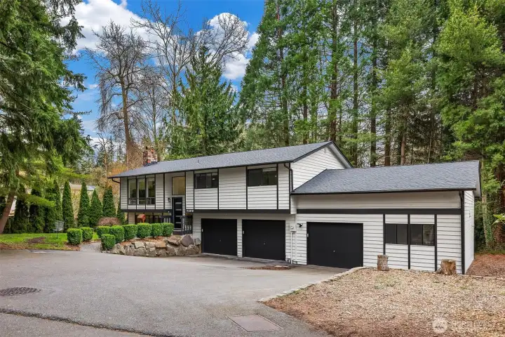 There Is A Certain Gravity To Mid Century Architecture When It Is Done Right, And This Residence Perched At The Quiet End Of A Private Cul-De-Sac Is A Masterclass In It's Genre. The Home’s Soul Is Defined By Its Expansive Walls Of Glass, Which Do Not Just Offer Views, They Invite The Surrounding Canopy Into The Living Space, Creating A Seamless Dialogue Between The Interior And The Treetops. From The Moment You Cross The Threshold Through The Brand-New Modern Entry Door, The Wow Factor Is Immediate! The Recent Evolution Of The Home Is Felt In The New Culinary Heart, Where Crisp Quartz Counters Meet A Dramatic Central Island Anchored By Statement Lighting. For The Host, French Doors Provide A Graceful Transition To The Expansive Entertainment Deck, Turning The Forest Backdrop Into A Natural Extension Of The Lounge For Twilight Drinks. Every Surface Has Been Touched, From The Freshly Painted Palette To The Curated Light Fixtures And Fully Remodeled Designer Baths. The Primary Suite Serves As A Secluded Sanctuary, Featuring A Meticulously Remodeled Bath With Clean Lines. This Aesthetic Extends To The New Roof, Gutters, And Systems, Offering The Reliability Of A New Build Within A Classic Soul. Practicality Remains Key; The Three Car Garage Currently Houses A Dedicated Woodworking Shop For The Artisan, Though It Is Easily Adaptable For A Four Car Collection. This Is Turnkey Living For The Design-Obsessed All While Being Anchored To Highly Rated Stellar Schools.