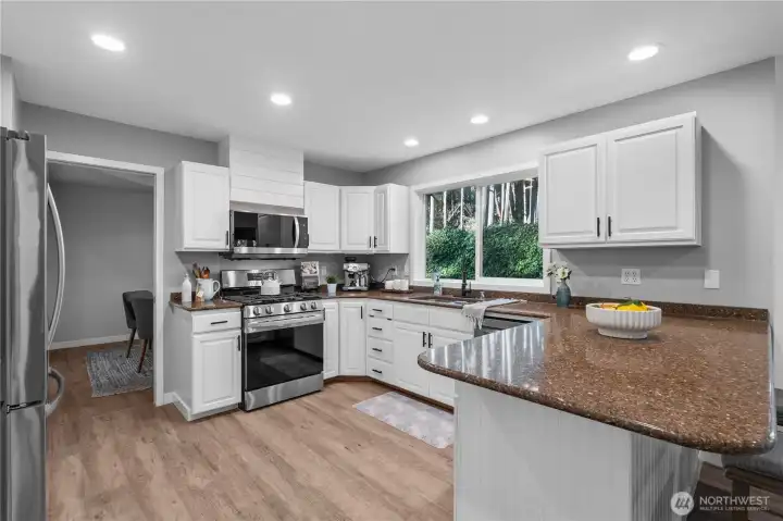 Tucked back off Newberry Hill, just minutes from Silverdale amenities & hwy 3, this beautifully updated home offers the perfect blend of privacy, convenience, & PNW charm. Set on nearly an acre, it feels like your own peaceful retreat—yet everything you need is just moments away. Step inside and you’re welcomed by soaring vaulted ceilings and an airy sense of space. Natural light pours through windows which frame serene territorial views & create a warm, inviting atmosphere. The thoughtful layout offers versatility with a living & dining space for hosting & gatherings, along with an open-concept kitchen & living room designed for everyday connection. The kitchen shines with all new stainless appliances, blending modern style with everyday functionality. Upstairs, the oversized primary suite becomes your personal sanctuary. The en suite bath has been tastefully updated with a fresh, bright aesthetic that feels both modern & uplifting. Two additional bedrooms share a full bathroom, offering flexibility for guests, office, or hobbies. Behind the scenes, major updates provide peace of mind, including a new furnace & A/C installed in 2023, ensuring year-round comfort & energy efficiency. With versatile living spaces, quality upgrades, nearly an acre of privacy, & a prime location near shopping, dining, & commuter routes, this home delivers the lifestyle today’s buyers are searching for—space to breathe, room to gather, & a place that truly feels like home.