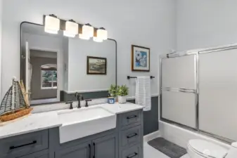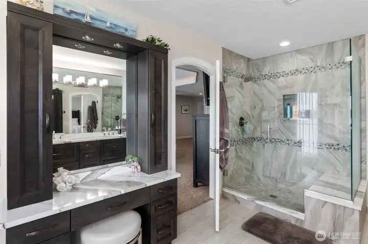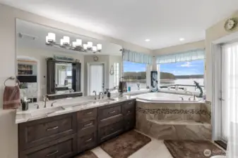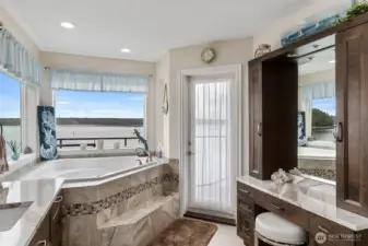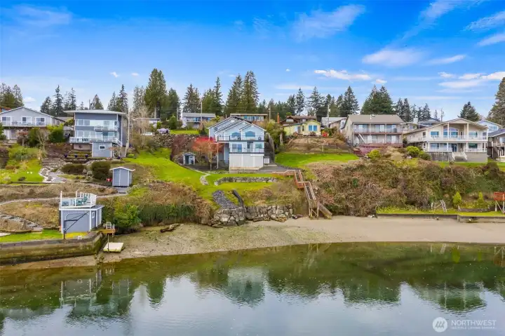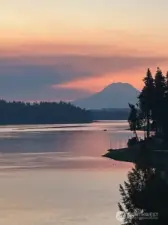 Wake up to breathtaking sunrises over Mt. Rainier and Eld Inlet in this impeccably maintained custom waterfront home. The views are truly unparalleled, spanning from the Olympic Mountains to the serene beauty of Hope and Squaxin Islands. Enjoy the ultimate coastal lifestyle with your bulkheaded waterfront and rare sandy beach, perfect for shoreline relaxation. The grounds are a private oasis, featuring fully fenced and irrigated landscaping, a gorgeous water feature, and a spacious view deck designed for entertaining against a world-class backdrop. Inside, the open-concept floor plan shines with vaulted ceilings, skylights, and rich cherry hardwood floors. The updated chef’s kitchen is a standout, boasting elegant soapstone counters, a gas cooktop, and an eating bar. The expansive downstairs primary suite serves as a luxury retreat, featuring a private sliding glass door to the deck with stunning views of the inlet and islands. The spa-like primary bath includes a walk-in shower, dual quartz vanity, and a jetted tub positioned perfectly to capture those waterfront vistas. Year-round comfort is ensured with a high-efficiency propane furnace and heat pump system. Perfect for entertaining, the property has room for parking 7 vehicles. This home also enjoys fantastic community amenities: a private marina, boat launch, clubhouse, and playground. Combining meticulous care with an unbeatable location, this residence offers a waterfront lifestyle that simply cannot be beat.