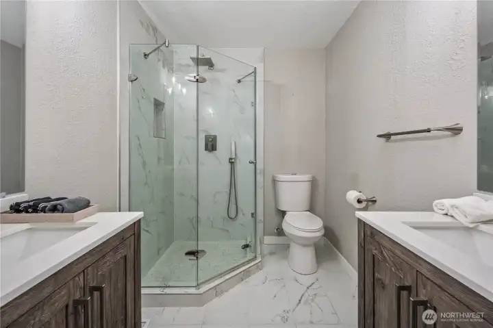 Impeccably maintained and recently updated, this stunning 2,564 sqft Gig Harbor residence showcases timeless elegance and thoughtful design. Featuring 3 bedrooms plus a bonus room and 3 baths, the open-concept layout is bathed in natural light. The chef’s kitchen boasts quartz countertops, tile backsplash, new cabinetry, and stainless appliances—flowing seamlessly into a spacious living area. The lower level offers a full suite with private entrance, ideal for guests or multi-generational living. Enjoy serene views from the oversized deck and secluded backyard. Includes a 2-car garage with extra laundry hookups and ample parking—all minutes from shopping, dining, and highways. Come tour today!