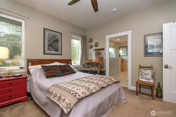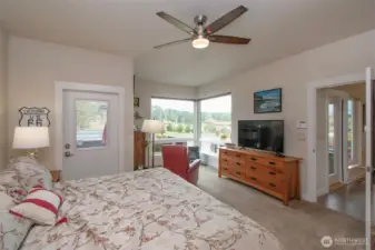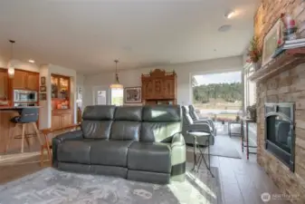 All things bright & beautiful & practically new in desirable Happy Valley! Ten year old custom rambler boasts 2022 sf w 3 BR & 2 BA on 2.65 acres. Built by Cornerstone & is minutes from town, but has the feel of country living w views of Happy Valley, Bell Hill, Burnt Hill & Olympics. Home has 9 ft ceilings throughout, spectacular vaulted ceiling in 3rd BR. Great room boasts a floor to ceiling natural stone propane fireplace, dining area with built-in china cabinet & kitchen to surpass your dreams with locally built solid cherry custom cabinets, gas cooktop, wall oven, 10 ft custom live-edge wood bar, & walk in pantry. Gorgeous wood-look plank tiles are in the main living areas & huge corner windows are throughout the home to take in the wonderful views. Primary BR has a delightful reading nook & attached en-suite boasts heated floors, even in the shower! A 2nd BR shares the en-suite & both have their own spacious walk-in closets. Comes with all the extras: entire home has an on-demand filtered hot water system, & if you like music, home has surround sound speakers that are installed in the great room & also on the covered back porch. Propane is plumbed to the kitchen, fireplace, and even the outside BBQ! Oversized 800 sf garage,12x20 storage shed, covered fire pit area, 100 ft long concrete driveway, RV parking, private outdoor hot tub area, fully fenced dog run/garden area, earth friendly natural rain pond system that is tied into the gutters, & $40,000 in landscaping.