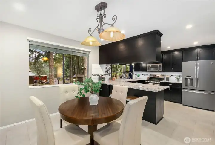 Tucked among towering evergreens on just over an acre, this Maple Valley home blends timeless Northwest charm with flexible, modern living. The 3,050 sq ft home offers 4 bedrooms and 3 bathrooms, anchored by light-filled living spaces and peaceful woodland views from nearly every window. The main level flows effortlessly from the inviting living room to the dining area and kitchen, while the daylight basement expands the possibilities with a kitchenette, generous living space, and a large bedroom—ideal for guests, or a private retreat. Step outside to enjoy expansive decks designed for year-round entertaining, surrounded by nature and privacy. The property truly shines with its massive 40’ x 36’ detached shop—perfect for hobbies, storage, or serious workspace—along with ample room for RVs, toys, and parking. Mature trees, open lawn areas, and a park-like setting create a rare sense of calm just minutes from town. This is more than a home—it’s a unique combination of privacy, functionality, and flexibility, offering a setting that’s increasingly hard to find in Maple Valley.