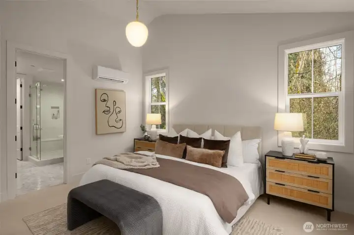 Locate property using GPS: 5420 106th Ave NE Kirkland, WA. Gerry Homes proudly presents a thoughtfully designed new construction single family home blending timeless craftsmanship with modern livability in the heart of Kirkland. This beautifully appointed home offers an ideal floor plan with elegant finishes and intentional spaces throughout. The main level features an open concept living, dining, and kitchen area designed for both everyday comfort and entertaining. The kitchen is anchored by a large island, ample cabinetry, walk-in pantry, and a premium appliance package featuring Bertazzoni Italia, Bosch, and Samsung, flowing effortlessly into the living area with a cozy fireplace. Step outside to the private patio; perfect for relaxing or hosting guests. A charming covered front porch, powder room, and direct access to the attached garage add both style and convenience. Upstairs, the serene primary suite is a true retreat featuring a spa-inspired bath (wired for tub lights) with dual vanities, soaking tub, walk-in shower, and a generous walk-in closet. Two additional bedrooms, a full bath, and an upstairs laundry room provide flexibility for today’s lifestyle.The home offers exceptional parking with two garage spaces, one attached and one detached, plus driveway and off-street parking. Ideally located near Carillon Point, parks, waterfront/marina access, dining, and top-rated Lake Washington Offering a 1% temporary rate buydown through the preferred lender, Loan Depot.