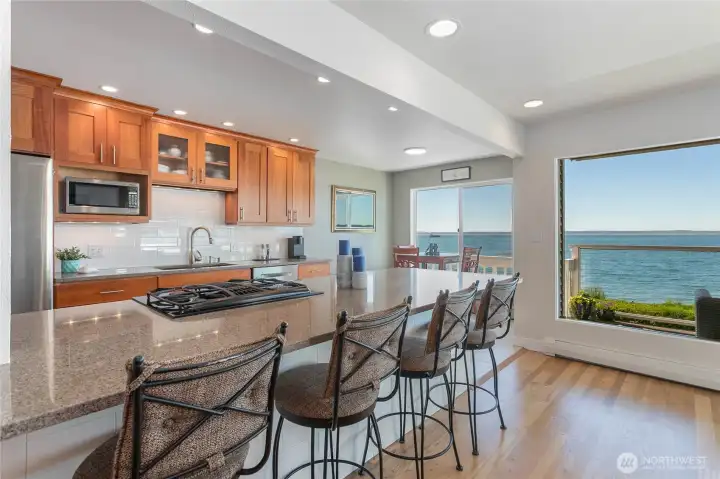 Fully remodeled main floor single-level condo with clear unobstructed views of San Juan Islands, Bellingham Bay, Canadian mountains, boat traffic, wildlife and more. Not only does your covered deck overlook Bellingham's most popular park and trail hub, you can step right off condo property into Boulevard Park for unmatched access! Recently remodeled, this 1,200 sqft unit features: primary bed w/ ensuite, bright/open kitchen & living room, refinished hardwood floors, gas fireplace, new deck railing & glass, additional storage and 2 covered parking spots. Short walks between historic Fairhaven & vibrant downtown Bellingham are right out your front door. Endless sunsets and everchanging seasonal views are calling you. Must see in person!
