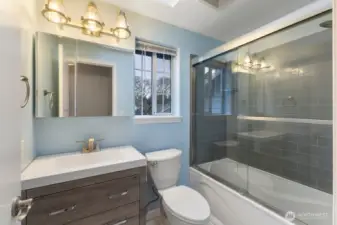 Welcome to this beautifully updated 3-bedroom, 2.25-bath home, perfectly situated on a spacious, level lot. The main floor features elegant hardwood flooring and a fully remodeled kitchen designed to impress, complete with stainless steel appliances, quartz countertops, under-cabinet lighting, a modern backsplash, and soft-close cabinetry. Upstairs, the inviting primary suite offers a refreshed en-suite bathroom and a walk-in closet, creating a comfortable private retreat. Step outside to your fully fenced backyard oasis—an exceptional space for relaxation and entertaining. Enjoy a rare collection of mature fruit trees, including fig, plum, Asian pear, aronia, persimmon, quince, jujube, blueberries, chestnut, and Siberian ginseng. The expansive 15x30 covered patio, cozy fire pit, and convenient storage shed make outdoor living enjoyable year-round. Ideally located with easy access to freeways, parks, shopping, dining, and everyday amenities, this home truly offers the perfect blend of comfort, convenience, and charm.