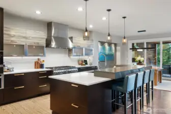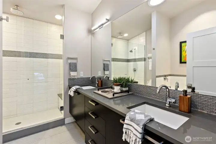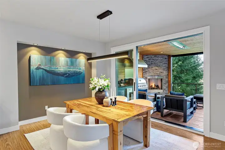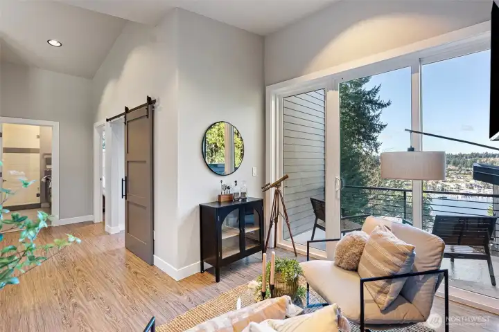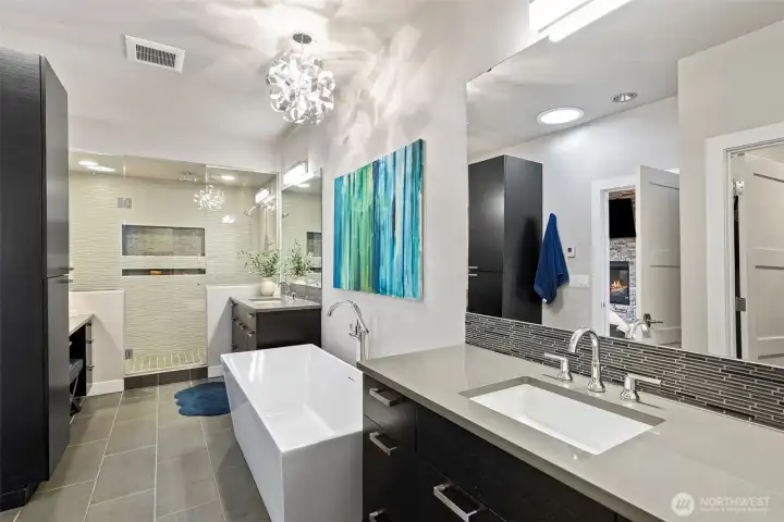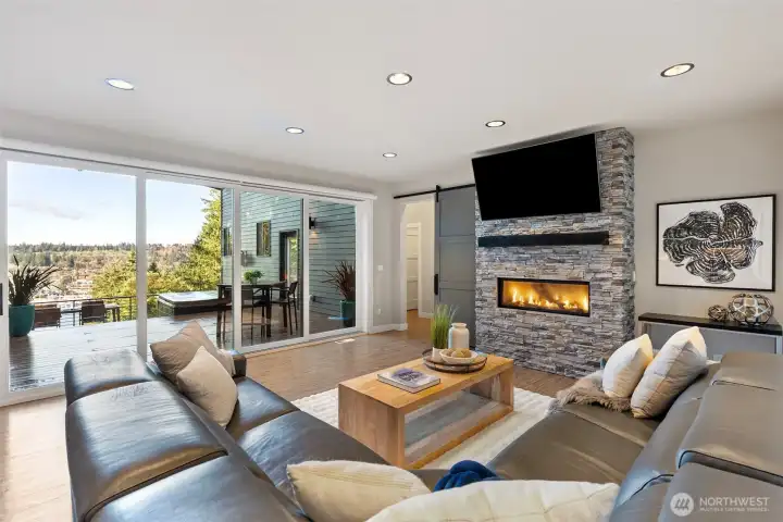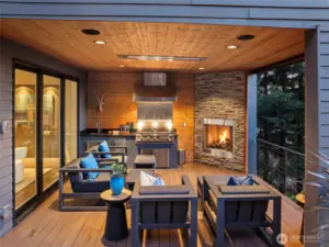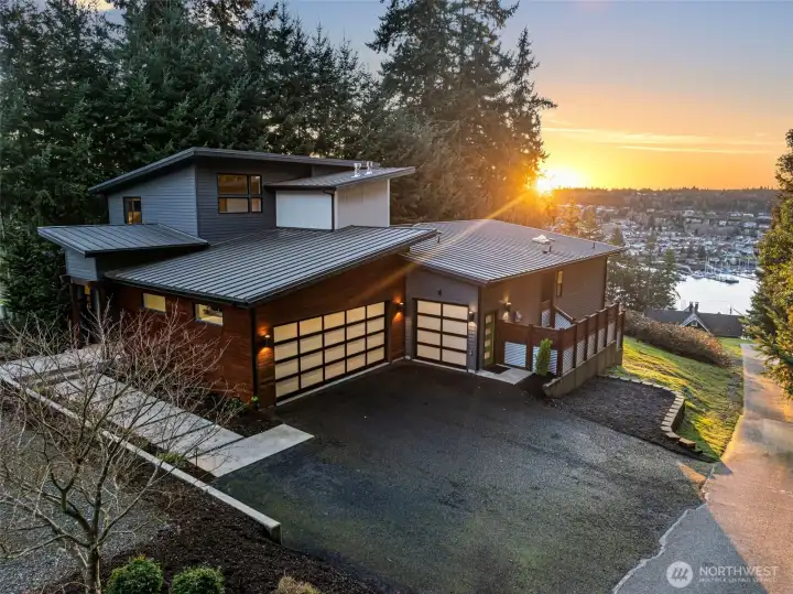 Spectacular View. Modern. Coveted Location. Rare Find. Step inside and feel instantly elevated—clean lines, walls of glass, and a layout designed to showcase sweeping Gig Harbor Bay views. Watch kayakers, boats, and the famous boat parade from your private heated deck. Expansive sliding doors open to an oversized two-level view deck with a gas fireplace, hot tub, outdoor kitchen, and ceiling heaters—perfect for morning coffee, evening beverages, and year-round entertaining. The chef’s kitchen blends style and performance with high-end Thermador appliances, two dishwashers, a built-in Miele coffee station, a large island seating six, view dining, and an impressive walk-in pantry. The living room invites you to relax, take in the scenery, or open everything up for seamless indoor/outdoor living. The main-level primary suite is a true retreat with a stacked-stone gas fireplace, vaulted ceilings, a picturesque view of the harbor and marinas, walk-in closet and a spa-inspired bath with heated floors, soaking tub, and oversized shower with therapeutic jets. Upstairs offers a guest-friendly layout with a cozy fireplace lounge with deck, full bath, two additional bedrooms (including one with a private view deck), and an office with a stunning picture-frame harbor view. Oversized 3-car garage, A/C, whole-house automatic backup generator, and lower-level storage complete the home—set among lush trees, high-end homes, and nearby walking trails.