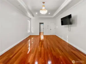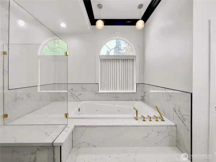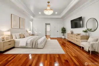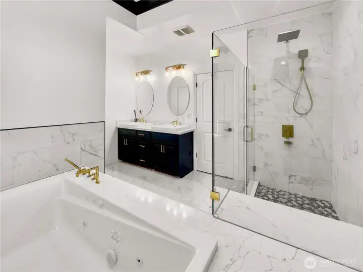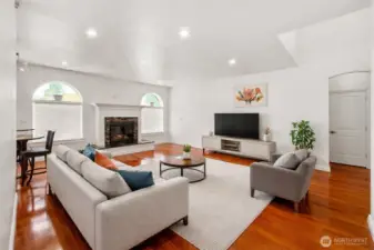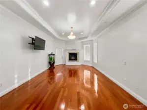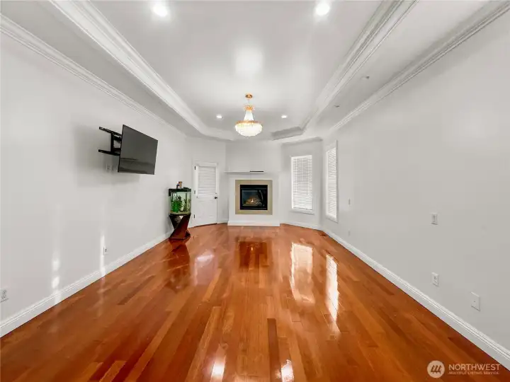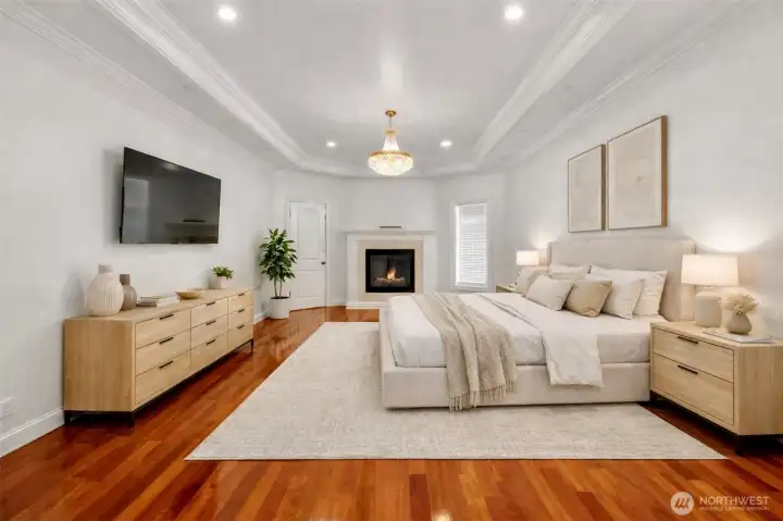 Beautifully crafted custom home in a highly desirable, close-in location. Thoughtful custom details shine throughout, including rich cherry hardwood floors and bespoke cabinetry. The inviting dining room is perfect for gatherings, while the spacious great room features a stunning gas fireplace and abundant natural light. The gourmet chef’s kitchen offers stainless steel appliances, granite countertops, a walk-in pantry, and seamless flow for everyday living and entertaining. The main-floor primary suite is a true retreat with its own cozy fireplace, fully updated spa-like 5-piece bath, walk-in closet, and private access to the patio. Upstairs, enjoy a huge bonus room with built-in speakers, plus an additional flex room with closet and fully updated bathroom—ideal for guests, office, or media space. Two additional bedrooms and laundry are conveniently located on the main level, complemented by beautifully updated bathrooms throughout. Outdoor living is exceptional with stamped concrete patios, a covered swim spa, covered outdoor dining area, RV parking, and a very private, fully fenced backyard—perfect for relaxing or entertaining year-round.