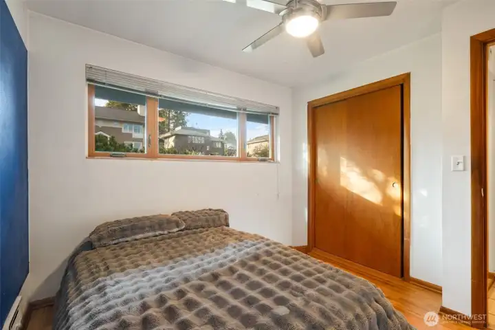 Substantial classic mid century brick home with sparkling lake and mountain vistas in coveted, lakefront Lakewood neighborhood. Exceptional location on a quiet street, within a block of miles of Lake Washington shoreline, with Mt Baker Rowing+Sailing to the north , and Seward Park to the south. Main floor with eat-in kitchen and expansive living areas showcase large picture windows which are oriented to capture those views! Dining room with built-in buffet and living room with wood - burning fireplace. Gleaming hardwoods on main. Seamless indoor/outdoor access from living areas to entertainment sized deck which connects to generous rear gardens. Original mid century tiled bathroom and gleaming hardwoods on both floors. Walk out lower level basement with enviable ceiling height and oversized flex space. Spacious two car garage with EV charger and additional driveway parking. Storage galore throughout and solar panels. Close to local indie breakfast spot and easy, breezy access to Columbia City. Summer is coming - this is the place to be!