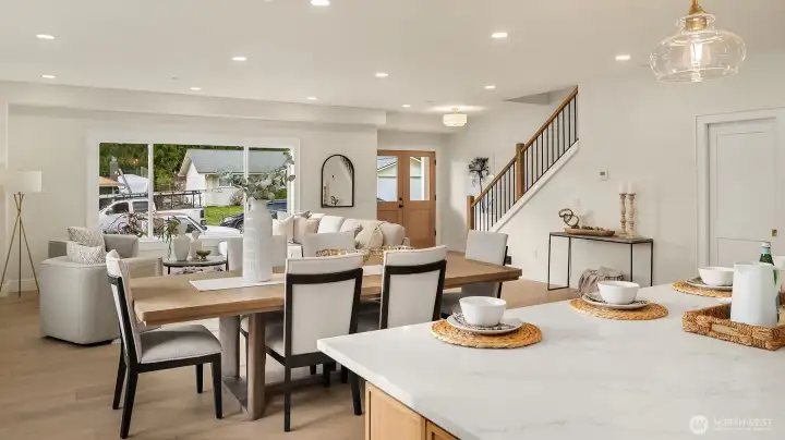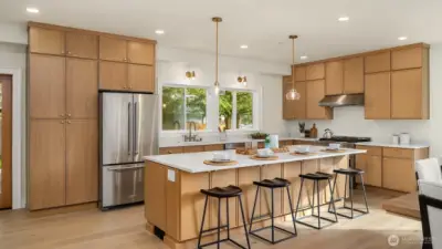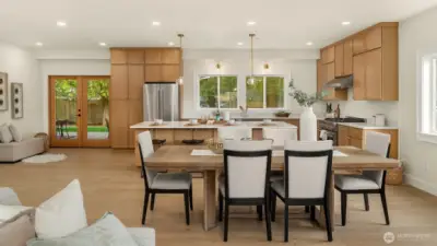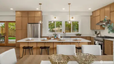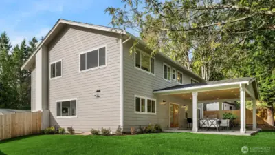 Designed for buyers who appreciate refined craftsmanship and thoughtful details, this beautifully rebuilt corner-lot home offers a rare blend of style, comfort, and everyday luxury. Vaulted ceilings upstairs and high ceilings on the main level create an airy, light-filled flow throughout. The chef-inspired kitchen features premium appliances, engineered hardwood floors, custom trim, and a hidden walk-in pantry, opening seamlessly to a warm living space centered around a new gas fireplace, perfect for quiet evenings or lively gatherings. Heated bathroom floors elevate daily routines, while expansive closets provide effortless organization. The primary suite includes a generous private office ideal for remote work, and a downstairs bedroom with a full bath offers flexibility for guests, in-laws, or a nanny. Step outside through the large French doors onto a ~500 sq ft covered patio already wired for TVs and an outdoor kitchen, setting the stage for memorable indoor-outdoor entertaining all year round. With brand-new heat pump HVAC, plumbing, electrical (including panel), roof, siding, windows, flooring, fresh landscaping, RV parking, a spacious garage ready for custom-built-ins, and a separate laundry room, every detail has been carefully curated for turnkey living. Quietly situated on a peaceful street in Redmond, homes finished to this level rarely come available. Schedule your private tour and experience the difference in person.