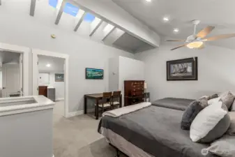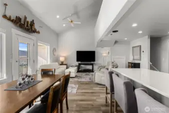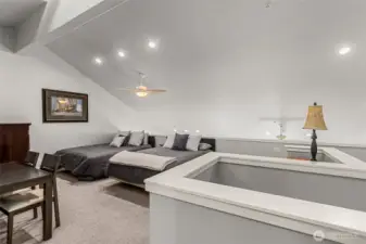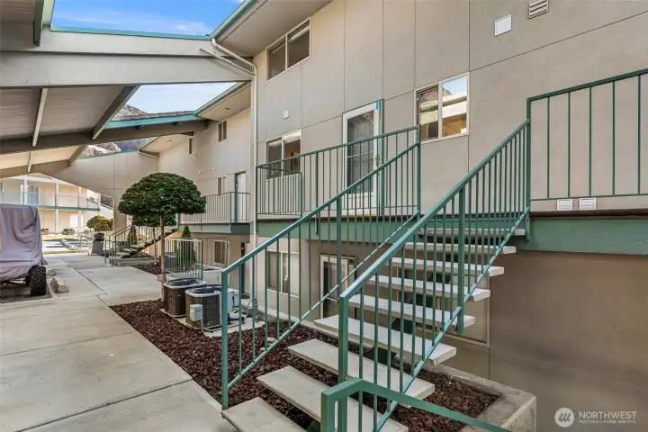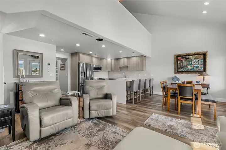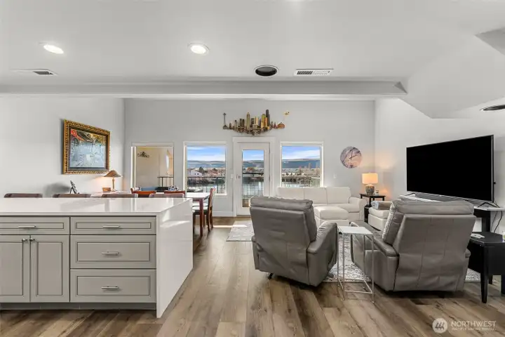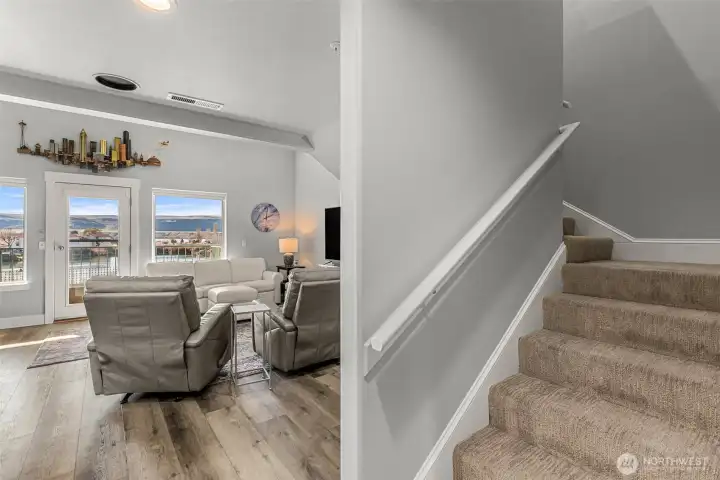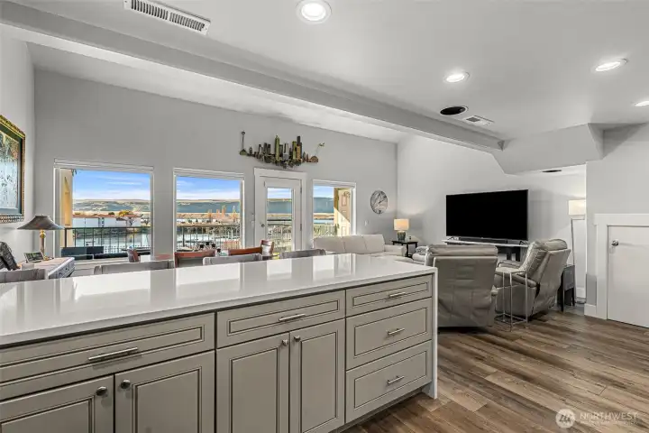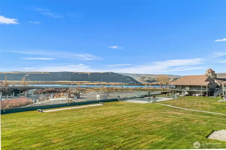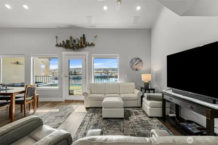 Nestled along the Columbia River, the gated community of Crescent View offers a desired living experience amidst the stunning basalt cliffs of Crescent Bar. This closely maintained complex features beautifully manicured grounds, community pools, tennis/pickle ball court and spas, all steps away, ideal for making lasting memories. This meticulously maintained upper floor open concept home where every detail has been designed for comfort and effortless living boasts upgrades throughout featuring a chef's kitchen with quartz countertops and high-end appliances, as well as vaulted ceilings and large picture windows that showcase the expansive river views. The upper floor primary suite is a haven of comfort, with a spa-inspired updated bathroom and a spacious loft perfect for extended stays or just solitude. The property's detached 288sf finished garage is a rare feature, along with onsite boat parking, perfect for those who enjoy the various recreational activities or for the hobbyist. The sought after Crescent Bar resort lifestyle awaits you in the secure community of Crescent View.
