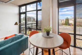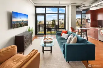 This iconic Mosler Lofts residence features sophisticated architecture and design plus a commanding view of the Space Needle. Designed as an ideal urban retreat, this home places you at the center of Seattle’s downtown lifestyle, surrounded by iconic views, resort caliber amenities and the energy of Belltown and South Lake Union. Soaring 10-foot ceilings and expansive walls of glass flood the interior with natural light, creating an open, airy ambiance that lives well beyond its square footage. The space is impeccably finished with hardwood floors, a beautiful kitchen featuring gas cooking and stainless steel appliances.Enjoy the convenience of a full size washer and dryer in your own condo plus secure garage parking and a dedicated storage locker along with a well-managed HOA offering a fitness center, full-time concierge services and a guest suite. Take in sweeping skyline views and unforgettable sunsets from your private balcony or entertain above it all on the rooftop terrace complete with BBQs, a fire pit and an exceptional setting for city living at its finest. Chances to secure this level of luxury at this value are exceptionally rare!