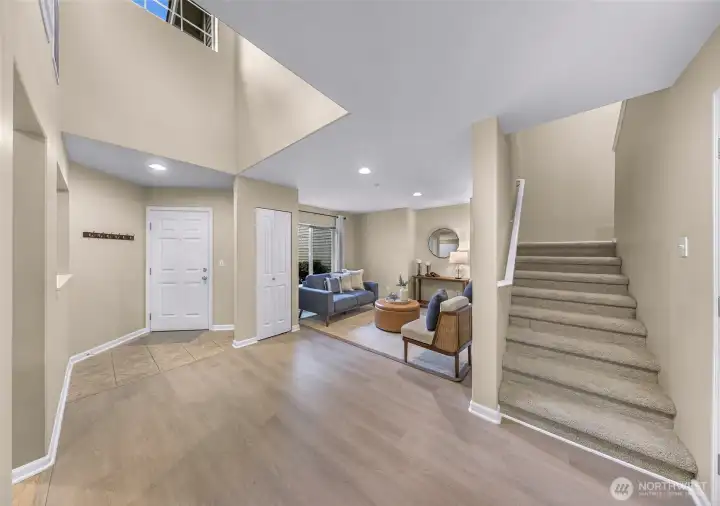 Welcome to The Pointe at Crosswater—a gated community that blends comfort, convenience, and low-maintenance living. This beautifully maintained townhome lives like new with its vaulted ceilings, cozy gas fireplace, brand-new LVP floors, and new carpet in the primary suite. The bright kitchen has beautiful hardwood floors and ample storage, and a versatile main-level flex space provides an ideal spot for hobbies, a home office, or extra living area. The primary suite on the main floor features an ensuite bath and walk-in closet, while upstairs you’ll find a spacious second bedroom and full bath—perfect for guests or added privacy. A private fenced yard and attached 2-car garage make daily living even more convenient. The community offers manicured grounds, walking paths, a neighborhood park, social clubs, and picnic areas. You’re also just minutes from shopping and a wide range of nearby dining options, including Chipotle, Coconut Kenny’s, Panda Express, Starbucks, and Chick-fil-A, along with quick access to major highways. Located within the highly regarded Lake Stevens School District, this home delivers an ideal blend of comfort, convenience, and community.