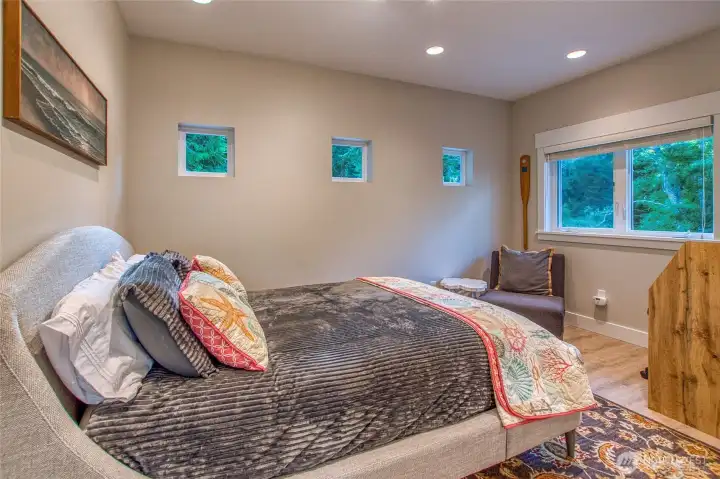 Effectively built in 2022 with modern systems and design, this waterfront home on San Juan Island features expansive views and durable, high-quality finishes throughout. Outdoor features include a hot tub, sauna, outdoor shower, and fire pit. The kitchen is well equipped with premium appliances, solid white oak cabinetry, quartz countertops, and a walk-in pantry. Over 100 feet of private beachfront allows for kayaking, beach walks, and regular wildlife viewing... a migration path for Orca Whales right in your own backyard. A separate two-bedroom, one-bath bunkhouse with full kitchen and views of the San Juan Channel provides flexibility for guests or permitted short-term rental use. Located near Roche Harbor and Roche Harbor Airfield, offering a balance of access and privacy.