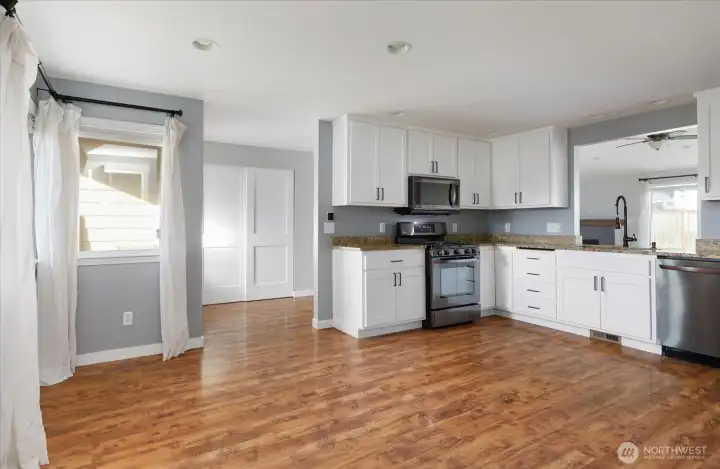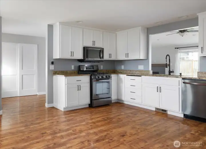 Tucked away on a quiet, friendly cul-de-sac and ideally located near schools, beaches, and the base, this beautifully maintained single-level home checks every box. Offering approximately 1,643 square feet, the thoughtful layout includes 3 generously sized bedrooms and 2 full bathrooms, designed for both comfort and everyday living. The expansive living room welcomes you with vaulted ceilings, abundant natural light, and a cozy corner gas fireplace, all complemented by durable laminate flooring that flows seamlessly through the main living areas. The open-concept kitchen is as functional as it is stylish, featuring granite countertops, stainless appliances, a gas range, a walk-in pantry, and a sunny breakfast nook—perfect for casual mornings or hosting guests. Retreat to the spacious primary suite, complete with a large ensuite bathroom offering a separate jetted soaking tub, walk-in shower, and an oversized walk-in closet—your own private escape at the end of the day. Additional highlights include air conditioning for year-round comfort, efficient gas heat and a natural gas water heater. Step outside to a peaceful, fully fenced backyard with plenty of space for entertaining, relaxing, gardening, or play. Whether you’re hosting summer barbecues or enjoying a quiet evening outdoors, this yard is ready to be enjoyed. This move-in-ready home blends comfort, efficiency, and location—welcome to the perfect place to call home...