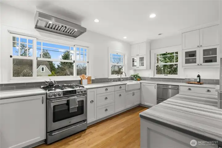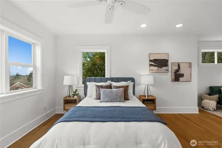 Rise & shine in your timeless Craftsman where classic Seattle charm meets the effortless Green Lake lifestyle. Tucked on a quiet street, this beautifully updated gem offers the perfect balance of character, comfort, & everyday convenience. Step inside & feel the warmth of hardwood floors, high ceilings, graceful arches, & curated lighting that honors the home’s historic roots while embracing modern living. Sunlight pours through large windows, creating bright & welcoming spaces designed for both relaxing mornings & lively evenings w/ loved ones. The chef’s kitchen is a true centerpiece—ft elegant mink marble counters, abundant cabinetry, SS appliances, & charming peekaboo lake views. Upstairs, the primary suite enjoys natural light from multiple exposures & a peaceful retreat-like feel, while additional bedrooms capture elevated neighborhood & lake outlooks. The lower level offers flexibility for a guest retreat, media room, WFH, or creative studio. Outside, imagine quiet mornings in the private backyard, summer dinners under the open sky, & weekends spent planting in raised beds or unwinding after a walk around the lake. Just minutes away, enjoy the vibrant energy of nearby cafés, restaurants, parks, & everyday conveniences. With easy connections to transit & major routes, commuting & exploring the city are refreshingly simple. This is more than a home—it’s a lifestyle rooted in community, character, and the simple joy of living near the heart of Greenwood & Green Lake!