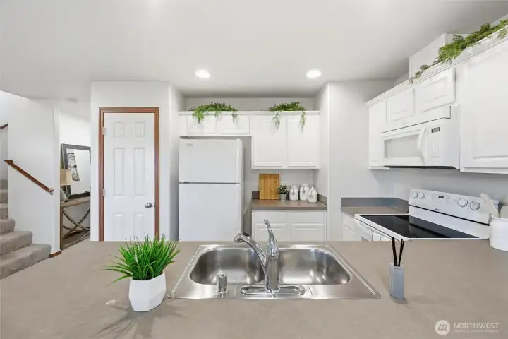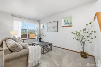 Beautifully updated 2 story townhome offering 1,148 sq. ft. with 2 bedrooms, 2 full baths, and a convenient main-level powder room. Fresh upgrades include new carpet, appliances, and lighting - creating a clean, modern, and truly move-in-ready home. The main floor features a warm and welcoming living room, a bright kitchen, and a half bath. Upstairs, both bedrooms enjoy the privacy and comfort of their own full en-suite baths. A single-car garage adds valuable storage space. Outside, a cozy fenced yard with a deck provides the perfect spot for morning coffee, relaxing evenings, or a safe space for pets. Ideally located within walking distance of downtown dining and just minutes from I-5, this property blends comfort with everyday convenience. An ideal starter home or investment opportunity - plus, it's safely outside the 100-year flood plain.