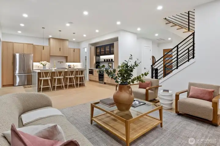 An exceptional new construction, Magnolia residence showcasing refined Northwest Contemporary design and superior craftsmanship. Light-filled interiors and curated designer finishes create an elegant, welcoming atmosphere throughout. The gourmet kitchen opens seamlessly to a spacious living room and covered deck, ideal for indoor/outdoor entertaining. The upper level features a luxurious primary suite with a spa-inspired bath and private balcony, along with two additional en-suite bedrooms. A fully finished lower level offers a generous recreation room with wet bar, three bedrooms, a bathroom, and direct backyard access. Detached alley-access garage. Ideally located near Discovery Park, dining, and shopping—offering the best of Magnolia living.