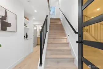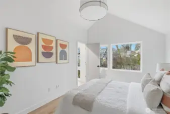 Sophisticated Ballard detached cottage offering 1,057sf of thoughtfully designed living space plus a heated 208sf garage/flex room. This 2-bedroom, 2-bath home features a dedicated office—ideal for remote work or creative pursuits. Soaring ceilings and generous windows flood the interior with natural light, while premium finishes elevate everyday living. Enjoy Bellmont cabinets, engineered hardwood throughout (no carpet), and heated floors in both bathrooms. Mini-split A/C in every room provides year-round comfort. The primary bathroom includes motion sensor lights and a dedicated bidet outlet for modern convenience. The heated garage offers flexible space for parking, storage, or a hobby room. Private backyard retreat with easy access to NW 65th dining and Downtown Ballard—88 Walk Score and 95 Bike Score. Quick routes to Golden Gardens and 15th/99 for SLU/Downtown commutes. Top-ranked schools!