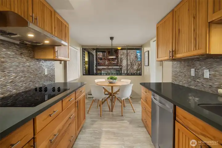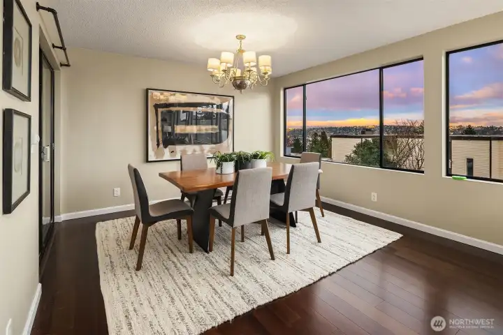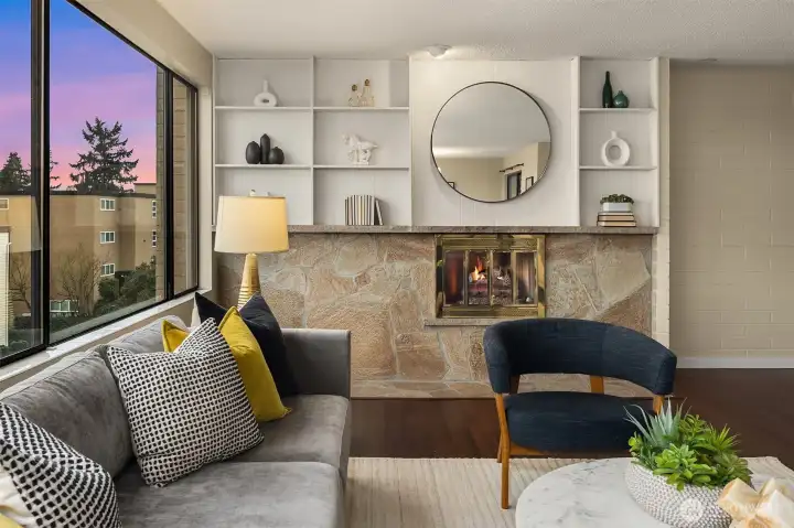 Experience elevated urban living in this updated Magnolia condo with spacious interior + sublime outdoor areas. One of only eight units in a well-designed complex, the home boasts thoughtful floor plan + radiant natural light. Expansive wall of windows, fireplace + bamboo flooring highlight open living/dining area. Covered patio, with mountain + ship canal views, expands entertainment options. Modern eat-in kitchen features newer stainless appliances + sleek quartz counters. Primary bedroom with ensuite bath. Two guest rooms, one with access to private terrace. One reserved garage + one reserved off-street parking space. Pool + gym room. Close to public transit + bike trails.