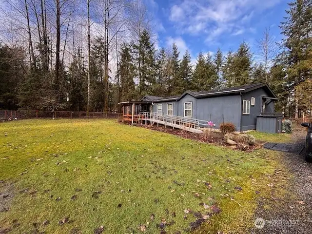 Set on 2 level acres, this triple-wide manufactured home offers exceptional space and versatility. The residence features four bedrooms plus a dedicated office, along with a spacious living room, family room, dining area, and an oversized kitchen designed for everyday comfort and entertaining. An additional exercise room provides flexible use to fit your lifestyle. Outdoors, enjoy a fully fenced yard ideal for pets, a small greenhouse, and ample open space for a large garden. The extra-large metal outbuilding is a standout feature, equipped with one large door, two standard entry doors, and a heated interior workspace—perfect for hobbies, storage, or business use. With abundant parking and room to grow, this property offers a rare combination of space, functionality, and opportunity.