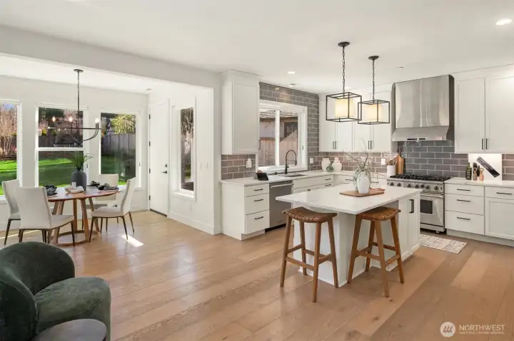 Storybook home nestled in Kirkland’s West of Market neighborhood offers the rare combination of a pristine luxury residence on a large idyllic lot in one of the Eastside’s most coveted communities. Meticulously crafted in 2021, this immaculate residence lives like new construction, offering a thoughtfully designed floorplan & sundrenched interior loaded with sophisticated finishes. Versatile main level provides generous open concept spaces w/dedicated formal living & dining areas that lend themselves to effortless entertaining or simple gracious living. The chef’s kitchen features a luxury Viking appliance package, butler’s pantry, informal breakfast nook & large family room w/plenty of gathering space. Main floor BR w/adjacent full BA provides options for an executive home office or guest suite. The expansive upper level reveals an additional 4BRs including a Jr suite & massive bonus rm ideal for play area, study or media rm. The tastefully appointed primary BR boasts a luxurious 5-piece bath w/dual vanities, large walk-in closet & bespoke designer fixtures. Expertly sited on a large level lot – this pristine property offers a covered outdoor dining area & an idyllic fully fenced backyard w/playset, trampoline & huge entertainment patio perfect for endless summer BBQs. Incredible West of Market location provides direct access to Juanita Bay trails, w/easy walkability to Juanita Village shopping/dining, 8+ parks, award-winning Lake WA schools & vibrant DT Kirkland waterfront.