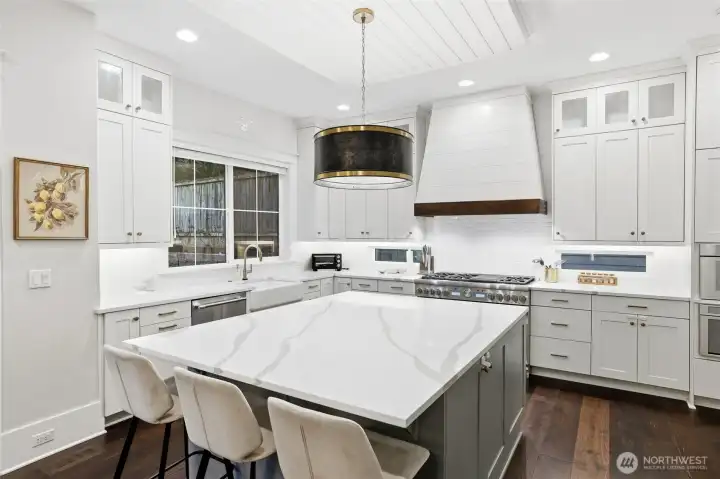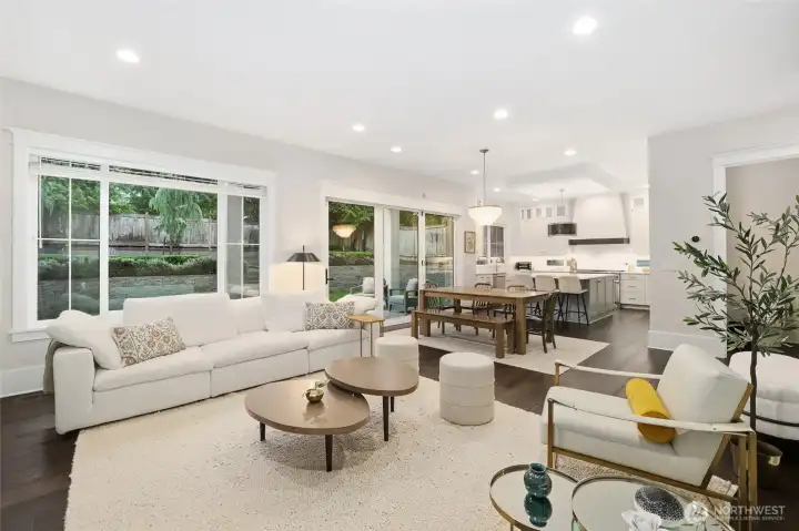 Stunning modern farmhouse in the heart of coveted Laurelhurst, blending refined elegance with everyday comfort. Soaring ceilings, rich hardwoods, designer lighting, and custom millwork create a bright, sophisticated interior, while the chef’s kitchen with premium appliances flows seamlessly into generous living and entertaining spaces. Expansive floor-to-ceiling accordion-style folding glass doors create a dramatic indoor-outdoor connection, opening effortlessly to the private, fully fenced and turfed backyard with patio and gas firepit—perfect for year-round gatherings and effortless entertaining. The luxurious primary suite is a true retreat with a spa-inspired bath and oversized walk-in closets, and a coveted junior primary suite offers ideal flexibility for guests, multigenerational living, or au pair needs. Central A/C, EV charging, and an attached two-car garage add modern convenience. Ideally located moments to Villa Academy, Laurelhurst Elementary School, University of Washington, and Seattle Children's Hospital, plus eligibility for membership at the coveted Laurelhurst Beach Club offering waterfront access, moorage, summer camps, and a vibrant community lifestyle—this is a rare opportunity to enjoy elevated living in one of Seattle’s most treasured neighborhoods.