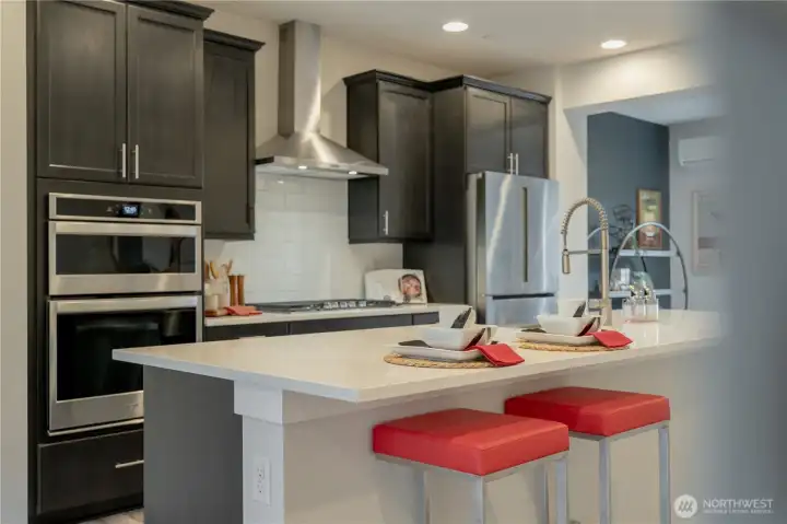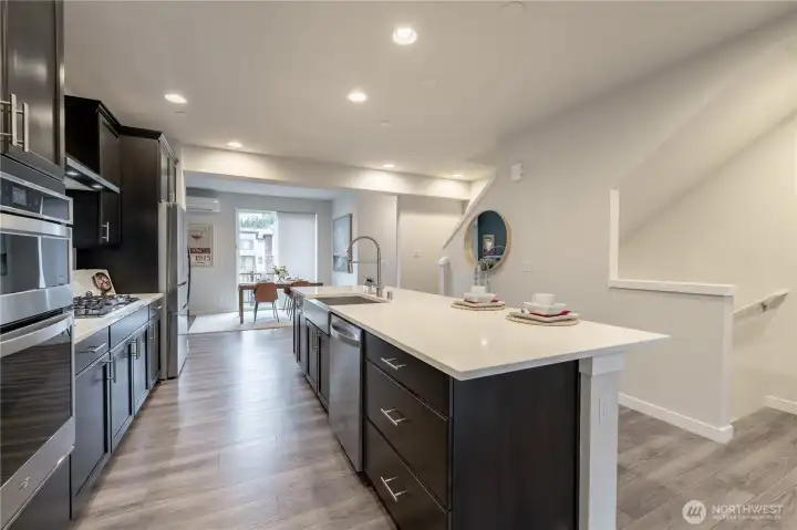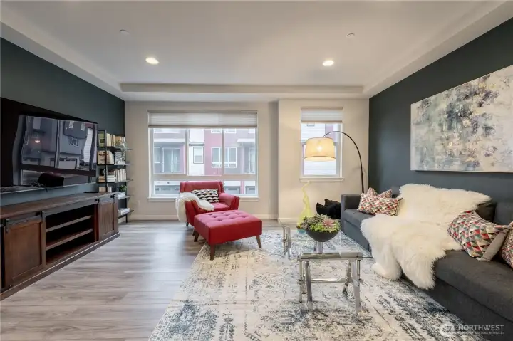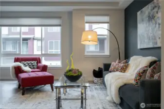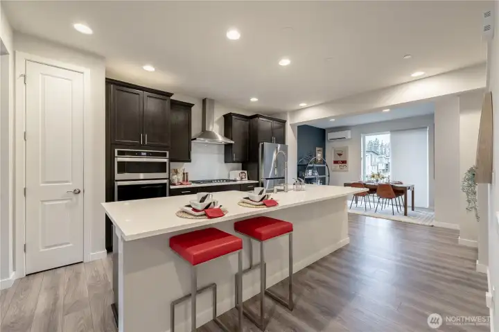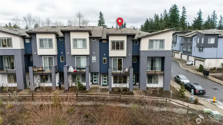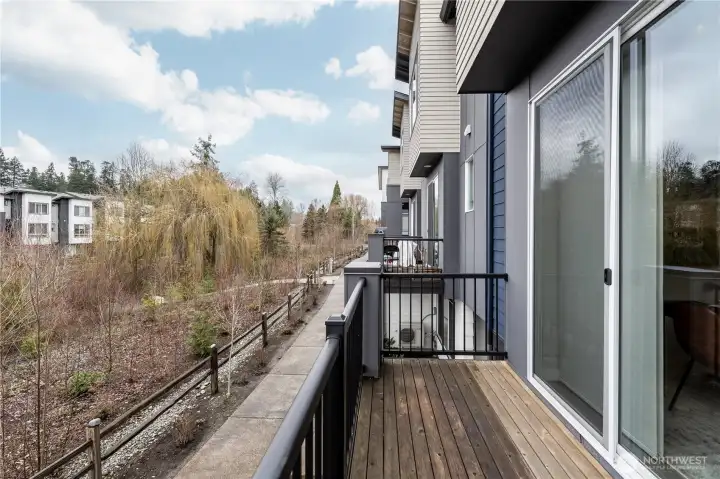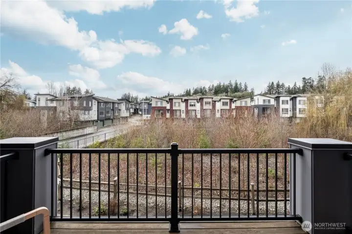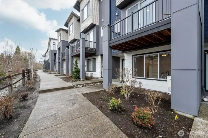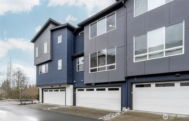 REFINED MODERN LIVING WITH TERRITORIAL VIEWS This stunning west-facing townhome, in pristine condition, borders a serene greenbelt—offering privacy, abundant natural light and a peaceful setting in a prime Bothell location. Built in 2021, it stands apart with more than $60,000 in thoughtful upgrades, high ceilings and spacious proportions rarely found in newer construction. Expansive windows illuminate the open-concept main level, highlighting hardwood/LVP floors and a beautifully appointed chef’s kitchen designed for everyday living and effortless entertaining. Generous living and dining spaces flow seamlessly, framed by tranquil greenbelt views and a private balcony extending the space outdoors. The lower level offers flexibility as a guest suite or home office with hardwood flooring and a full bath. Upstairs, the primary suite features a walk-in closet, ensuite bathroom and an extra mini-split for enhanced comfort. Additional highlights include upgraded designer finishes throughout the home, a two-car garage plus driveway parking for two small cars (or one larger vehicle) and convenient guest parking nearby. Enjoy low-maintenance living minutes from shopping, parks and commuter routes within the quiet, well-managed Urbane Village community and the highly regarded Northshore School District. Impeccably maintained, thoughtfully designed and move-in ready—welcome home!