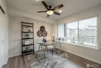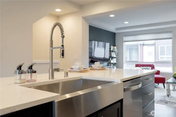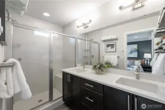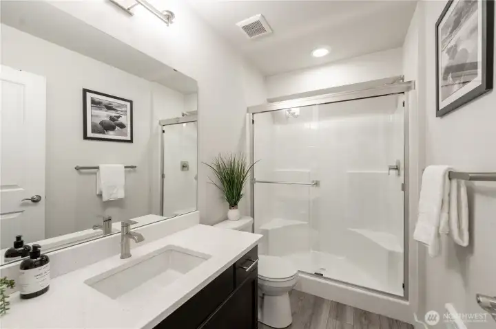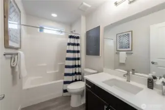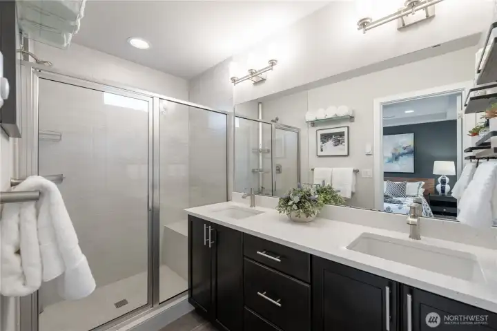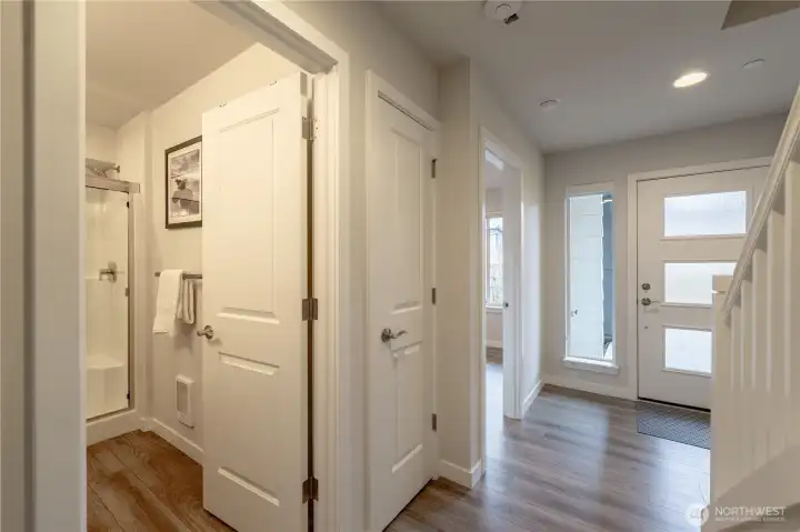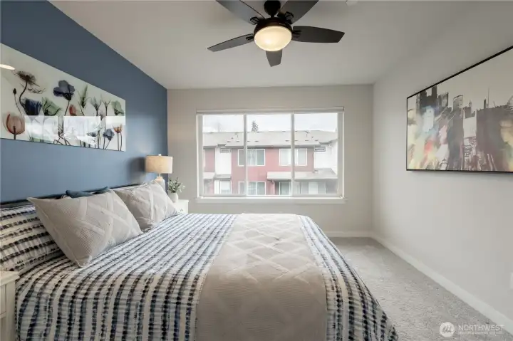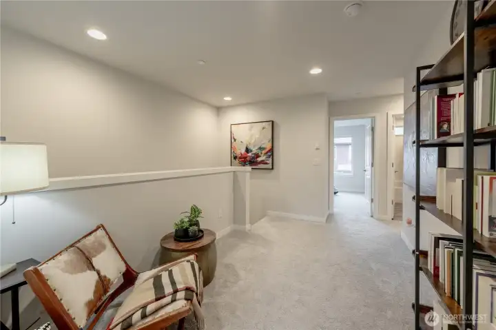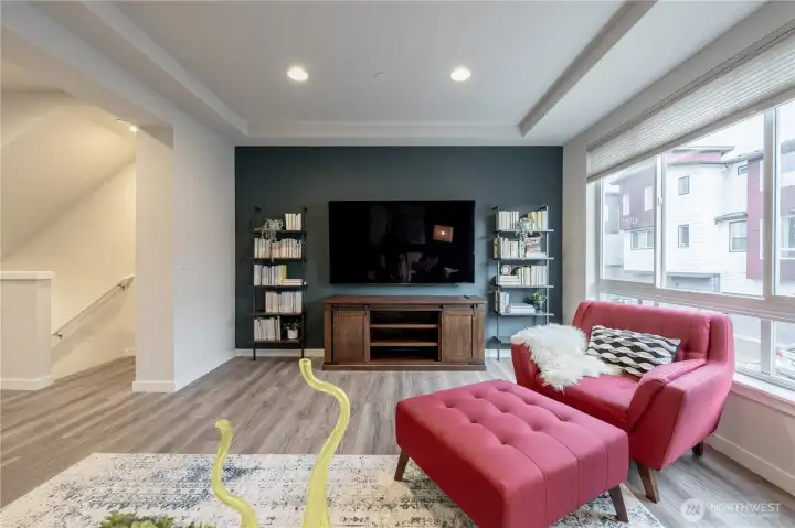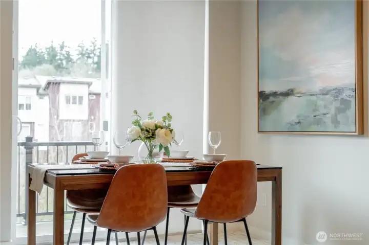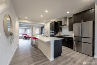 REFINED MODERN LIVING WITH TERRITORIAL VIEWS This stunning west-facing townhome, in pristine condition, borders a serene greenbelt—offering privacy, abundant natural light and a peaceful setting in a prime Bothell location. Built in 2021, it stands apart with more than $60,000 in thoughtful upgrades, high ceilings and spacious proportions rarely found in newer construction. Expansive windows illuminate the open-concept main level, highlighting hardwood/LVP floors and a beautifully appointed chef’s kitchen designed for everyday living and effortless entertaining. Generous living and dining spaces flow seamlessly, framed by tranquil greenbelt views and a private balcony extending the space outdoors. The lower level offers flexibility as a guest suite or home office with hardwood flooring and a full bath. Upstairs, the primary suite features a walk-in closet, ensuite bathroom and an extra mini-split for enhanced comfort. Additional highlights include upgraded designer finishes throughout the home, a two-car garage plus driveway parking for two small cars (or one larger vehicle) and convenient guest parking nearby. Enjoy low-maintenance living minutes from shopping, parks and commuter routes within the quiet, well-managed Urbane Village community and the highly regarded Northshore School District. Impeccably maintained, thoughtfully designed and move-in ready—welcome home!