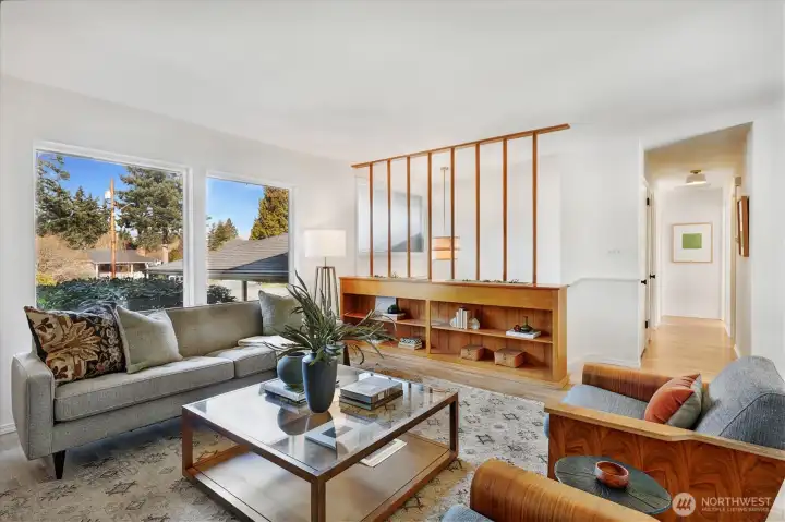 Idyllically located in Meadowdale, first time on the market in over 60 years. This home has been thoughtfully updated while preserving & celebrating the design details of the coveted 1960s “Golden Era.” Each room is sun-filled displaying beautiful views of the large 8,000+ sq ft fenced garden, deck, & entertaining spaces, along w/ a garden house in the backyard next to the lower brick-paved patio. Sliding glass doors open to a large covered deck w/ built-in seating just off the kitchen & dining room, allowing for expanded entertaining space & seamless indoor-outdoor living. Updates include: vinyl windows, roof, refinished hardwoods, exterior & interior painting, carpet, vinyl flooring, door/cabinet hardware, updated lighting, Quartz counters in kitchen & landscaping. The main floor features 3 bedrooms, full bathroom & a large living room w/ a cozy fireplace & expansive windows overlooking the spacious front yard. Versatile layout on lower level w/ a bonus living/recreation room, a ¾ bath & a laundry room, along w/ a hobby/flex space filled w/ storage cabinets, workbench & the potential to add a 4th bedroom. The large carport includes multiple storage spaces & plenty of driveway parking, adjacent to raised garden beds filled w/ heirloom rose bushes. Located across the street from Meadowdale Playfields, w/in one mile of top-rated & in-boundary schools, Meadowdale Park & to Haines Wharf Park to enjoy the Edmonds waterfront. Four miles from Lynnwood City Center Light Rail & I-5.
