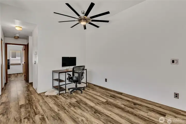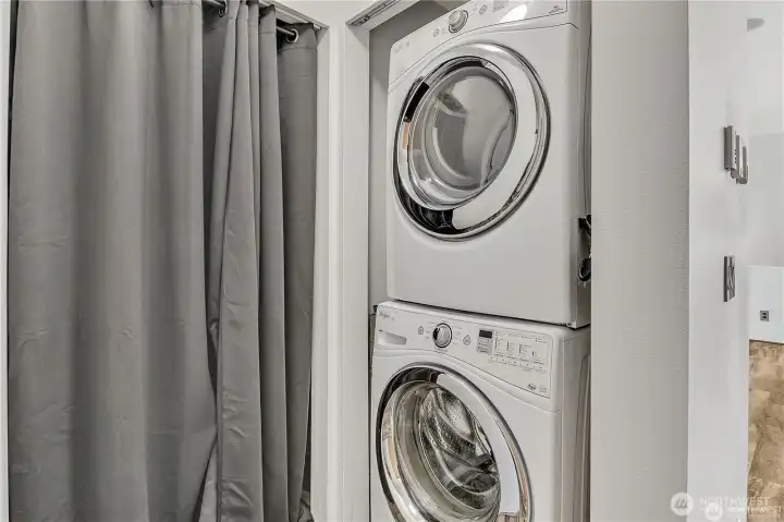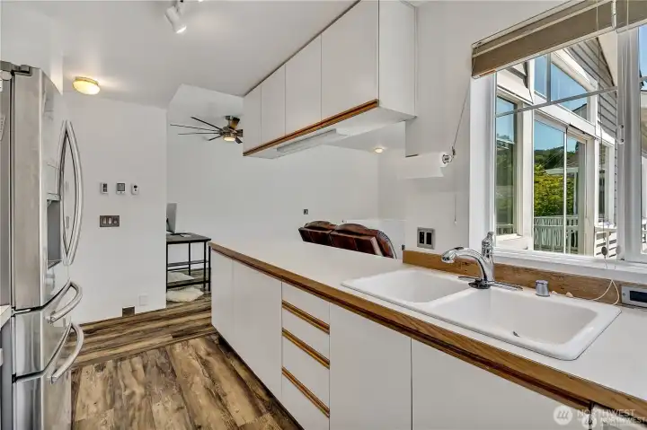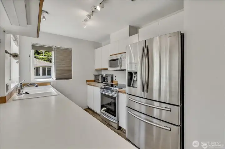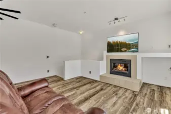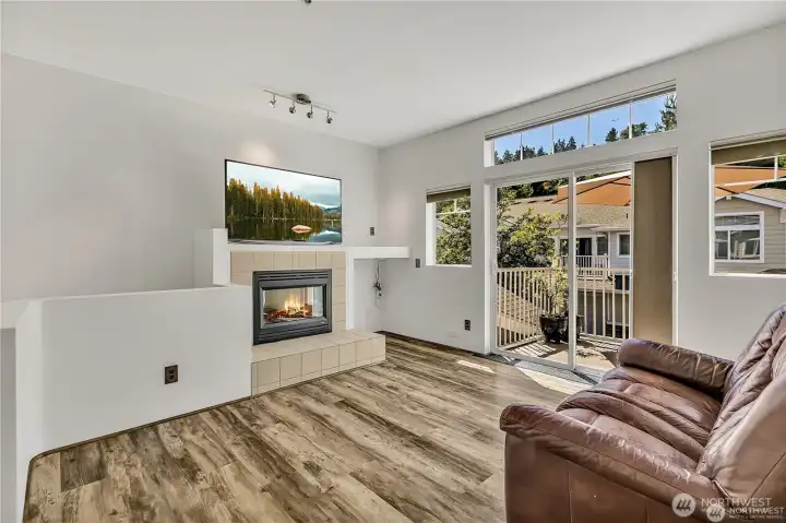 Welcome home to this light filled, open-concept condo at The Ridge at Riverview. Soaring ceilings highlight the spacious living and kitchen area, perfect for both everyday living and entertaining. Enjoy newer appliances, a cozy fireplace, a convenient laundry nook, and a private deck ideal for morning coffee or evening relaxation. Stylish waterproof Pergo laminate floors with radiant heat add comfort and durability, while energy-efficient Bali cellular blinds enhance year-round comfort. The generous bedroom features a walk-in closet, and the attached one-car garage with extra storage. Tucked away in a quiet, safe community bordered by a lush greenbelt, yet perfectly located near I-5, Hwy 167, Light Rail, and Sea-Tac Airport, this home offers the ideal blend of serenity and convenience. Repaired-Replaced 2025: Vinyl siding and weather proofing for building, Deck and Railings, Windows in kitchen and living room, Sliding glass door, Transom and gutters.