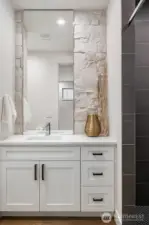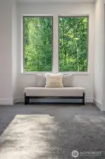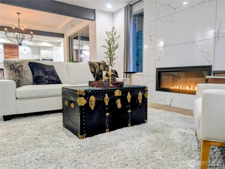 The Gabriel, by Connie Kay Design, is a distinguished new-construction residence within the exclusive Bradford Development—a boutique collection of 12 luxury homes. This French-inspired home showcases elevated craftsmanship, refined finishes, and an exceptional level of detail that sets it beyond standard construction. The custom walnut staircase bridges the towering foyer and crystal chandelier, creating awe from the moment you arrive. The kitchen is a statement of form and function, featuring soft-close custom cabinetry, a prep sink, pot filler, high-end appliances, custom walnut hood, large island, and generous walk-in pantry. An expansive wood-wrapped covered patio, complete with skylights, makes for effortless entertaining. The main level’s exposed beams and abundant natural light combine with a sophisticated layout including a walnut-paneled home theater with under-cabinet beverage cooler, a bedroom with en-suite bath, and one of two conveniently located utility/laundry rooms. Upstairs, the primary suite hosts dual walk-in closets and French doors opening to a private balcony with a peekaboo water view. The bathroom showcases rich forest views, a luxurious tiled shower, a large soaking tub, and custom cabinets with toe-kick lighting. With exceptional attention to design, the craftsmanship of this home defines The Gabriel—where refined French architecture meets modern luxury living. All just minutes from historic Steilacoom, the ferry, beach, and waterfront parks.