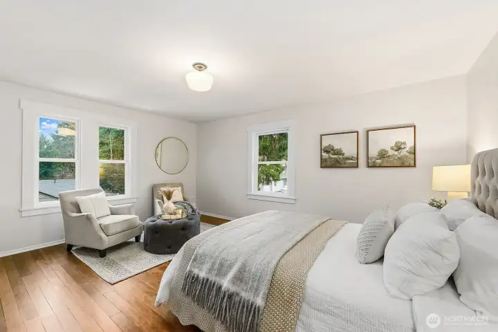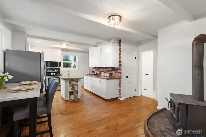 One-of-a-kind North Seattle farmhouse/craftsman blending timeless charm with oversized spaces throughout. The unmistakable character begins with a huge wrap-around front porch and an expansive back deck overlooking a large, level lot—perfect for pets, play, and entertaining. Generous living & dining rooms offer impressive scale, while all bedrooms are exceptionally spacious. A classic country kitchen features a rare second stairwell, adding flexibility & charm. Woodstove in kitchen. The unfinished basement is accessible from inside the home and through double doors to the backyard, offering excellent storage or future potential. Updates include new windows, electrical panel, furnace, deck, roof, kitchen updates, beautifully refinished fir floors, newly remodeled bathroom, and fresh interior paint. Laundry up & in basement. Basement perfect for shop and storage. City zoning changes may allow for future improvement or ADU/DADU possibilities (buyer to verify all uses and restrictions to their satisfaction). Ideally located with easy access to freeways, light rail, shopping, parks, and more—this is truly an amazing place to call home.