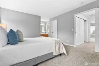Enjoy convenient, low maintenance living, Bellingham Bay view, and amazing sunsets from this 2 Bedroom 2.5 Bathroom condo in Barkley. Lives like a townhome with no shared walls! Fresh paint, open layout, & abundant natural light. Main floor features living room, guest bath, & kitchen with dining area. Slider opens to a fenced courtyard backing to Northridge Park, very private and quiet. Upstairs: primary w/ ensuite & walk-in closet; second Bedroom with bay views & private ¾ bath. Deep 1-car garage w/ storage. Water, sewer, and lawn service included in the monthly HOA fee. Easy trail access to the right of the condo. Prime location near Barkley Village, Lake Whatcom & trails.