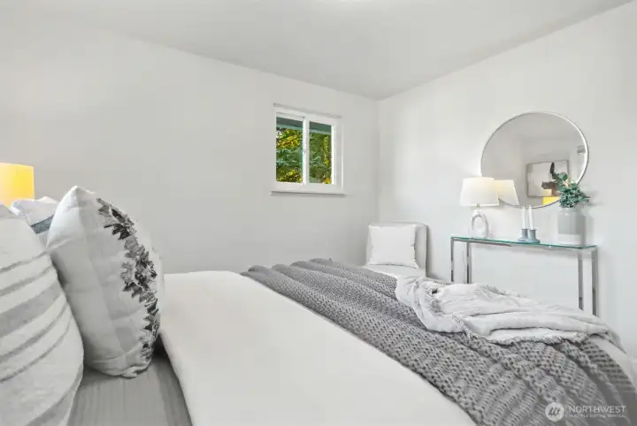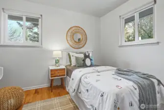 Welcome to this charming 1953 mid-century gem in Seattle's beloved Maple Leaf neighborhood. Perched above a very quiet street and surrounded by mature landscaping, this is more than just a house, it is a private, conveniently located in-city retreat. Step inside to a generously sized living room, beautifully illuminated by large windows and thoughtfully set apart from the dining and kitchen areas, offering the perfect balance of openness and separation. Fresh paint and radiantly refinished hardwood floors create a bright, welcoming feel throughout. The kitchen has been tastefully updated with granite counters, custom cabinetry, and newer appliances. The skylight in the large dining area adds great natural light. The main floor also includes two comfortable, well-appointed bedrooms, lots of closet space and a full bathroom with tiled floors. Downstairs, the lower level offers impressive ceiling height, a versatile rec room space, plus a third bedroom, half bath, a huge laundry room and loads of storage. The fully fenced backyard showcases an oversized patio, perfect for summer barbecues with friends and loved ones. The south-facing yard is perfect for gardening, with plenty of room for pets to roam. An efficient electric heat pump handles whole-home heating and cooling (whole house A/C), keeping things comfortable and low maintenance. Close to shops, restaurants, and amenities, with easy access to bus lines and the Northgate light rail. This is a great opportunity.