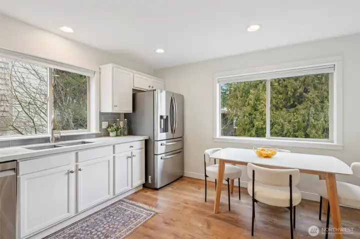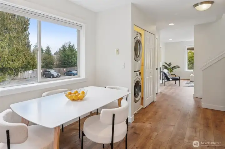Charming, updated 3-bedroom, 2.5-bath corner townhome in Broadview offering 1,470 sq ft of comfortable, well-designed living. Enjoy excellent flow, a 1-car garage, fully fenced backyard, and private patio—ideal for entertaining or relaxing. Recent updates include new flooring and fresh interior paint throughout. The main level features an open-concept kitchen and living room with a cozy fireplace, plus a convenient powder room. Upstairs, you’ll find the primary suite with ensuite bath and a second bedroom with generous closet space. The lower level offers a spacious third bedroom with direct access to the backyard and a full bath—perfect for guests, a home office, or flex space. Located in a quiet, well-maintained 8-unit complex with NO HOA. Just minutes to Bitter Lake Park and Carkeek Park, with seamless access to downtown Seattle. Peaceful living meets everyday convenience with a short walk to transit. Rare privacy and location in North Seattle! Mortgage savings may be available for buyers of this listing.