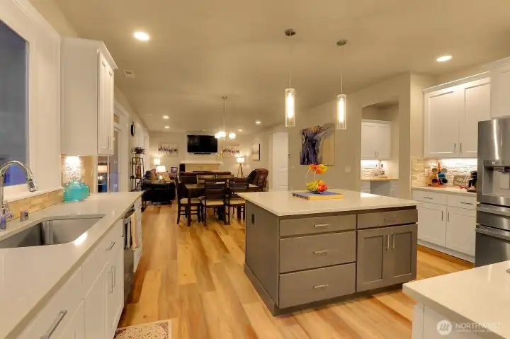 Premium Modern Comfort meets Serene Living. Located in a gated small tranquil neighborhood. A perfect place for relaxation, recreation and everyday living. Perfect floorplan, boasts expansive square footage with exceptional use of space, semi-open plan creates great open plan living that still provides separation. Premium finishes and features, are High quality throughout the home with quartz, tile, soft close hardware, cased windows, 9' High ceilings on the main level. Well appointed Island Kitchen with pocket office, walk-in pantry and Butlers pantry. Open plan, dining space and family room off Kitchen with Formal dining room and ample office also on the main level, Upstairs you'll find a grand owners suite with remarkable bath and roomy walk-in closet. Vast laundry room, with plenty of space to work and 3 additional ample bedrooms, two with walk-in closets. Large outside covered deck with beautiful fireplace for year round use. Three car garage with room for a work bench. One acre lot, close to commuter routes.